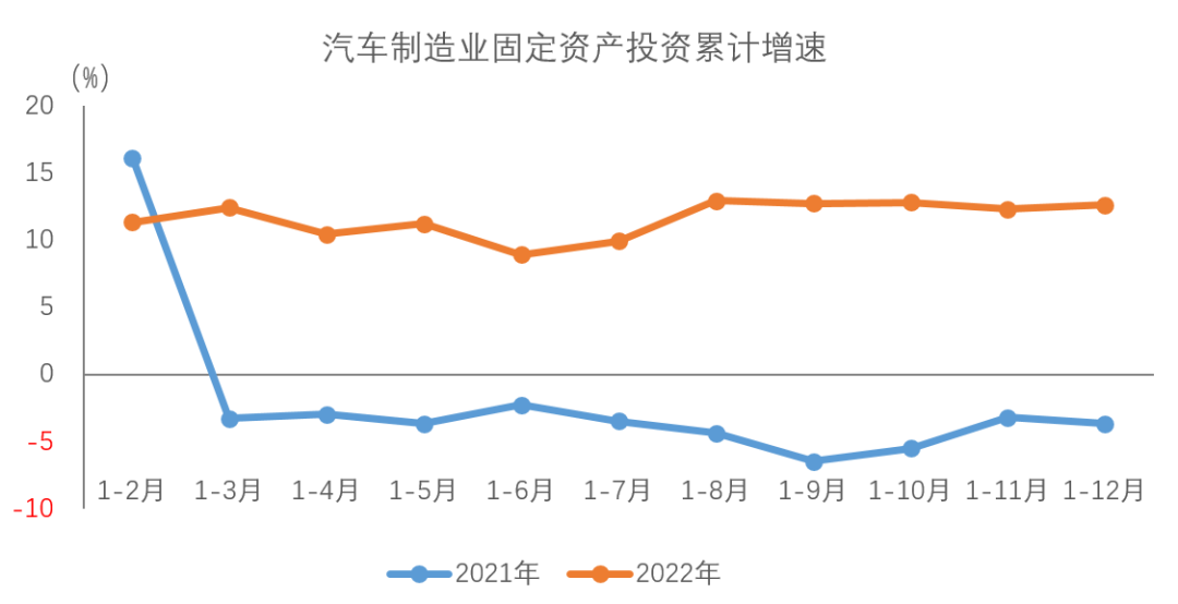 中国汽车工业协会:2022年汽车制造业固定资产投资保持快速增长 据中国汽车工业协会整理的国家统计局数据显示,2022年,汽车制造业固定资产投资继续保持快速增长。 2022年,汽车制造业固定资产投资同比增长12.6%,高于全国固定资产投资7.5个百分点,高于制造业固定资产投资3.5个百分点。 更多阅读:中国汽车工业协会:2022年1-11月汽车制造业利润同比小幅增长中国汽车工业协会:2023年1-7月汽车制造业利润同比微增中国汽车工业协会:2022年汽车制造业利润略有增长中国汽车工业协会:2020年汽车制造业固定资产投资同比下降12.4%中国汽车工业协会:2022年6月汽车制造业工业增加值同比呈明显增长中国汽车工业协会:2022年1-5月汽车制造业实现利润同比降幅比上月略有扩大中国汽车工业协会:2022年1-8月汽车制造业固定资产投资稳中有升中国汽车工业协会:2022年1-4月汽车制造业固定资产投资同比增速略有减缓中国汽车工业协会:2021年1-2月汽车制造业固定资产投资同比结束下降中国汽车工业协会:2023年1-2月汽车制造业利润同比快速下降中国汽车工业协会:2023年1-5月汽车制造业营业收入同比保持较快增长中国汽车工业协会:2023年1-5月汽车制造业利润较快增长中国汽车工业协会:2023年1-5月汽车制造业固定资产投资保持较快增长中国汽车工业协会:2023年1-5月汽车制造业营业收入同比保持较快增长中国汽车工业协会:2023年一季度汽车制造业工业增加值同比增长