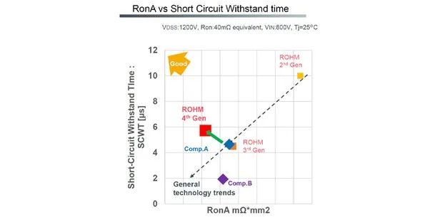 图6:据称罗姆的第4代器件增加了短路耐受时间,同时降低了Ronsp(来源:罗姆)