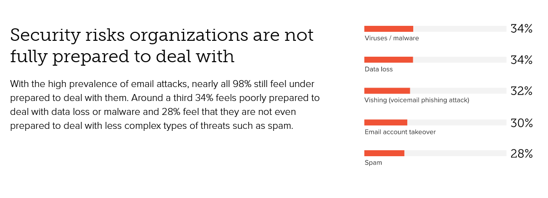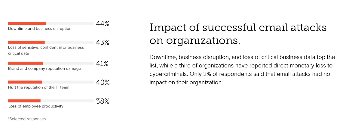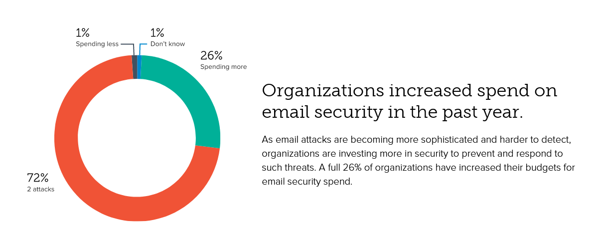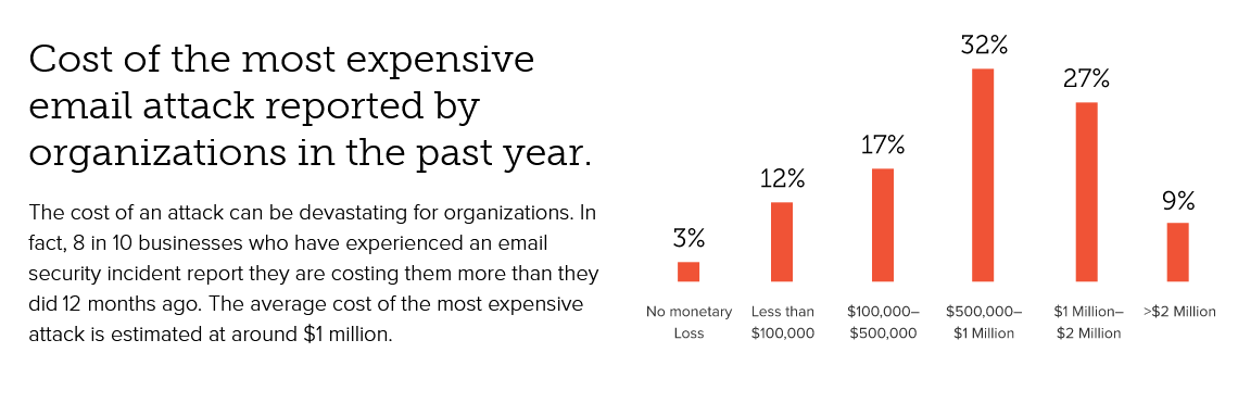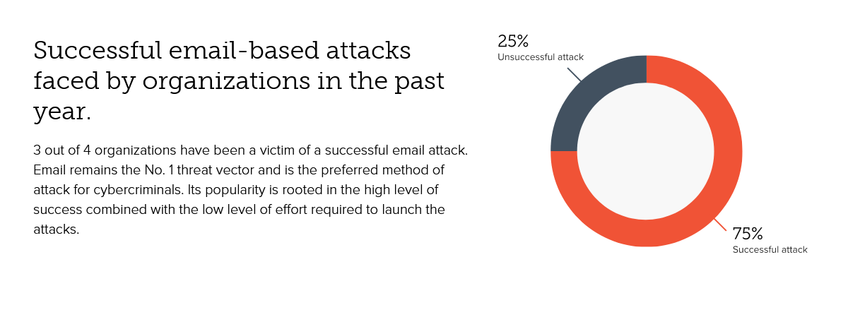 这项由 Vanson Bourne 开展的研究发现,组织在遭到以电子邮件为载体的安全攻击之后,想要恢复平均要花费 100 万美元。69% 的勒索软件攻击都是从电子邮件开始的。