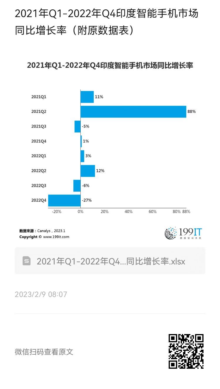 - IDC:2022年Q2印度智能手机出货量同比增长约3%