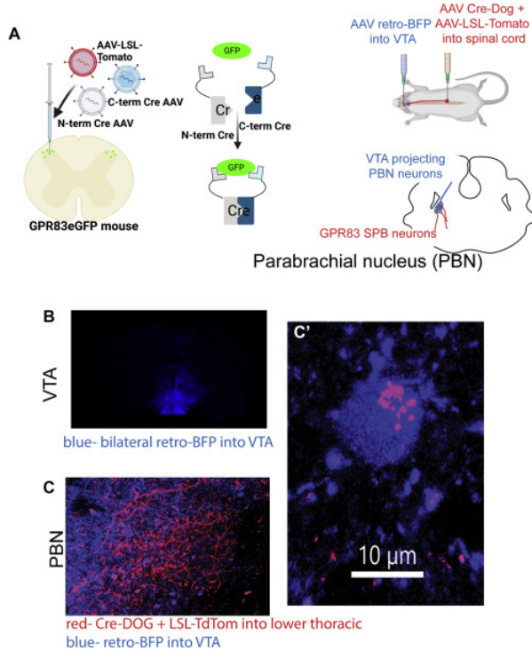 研究团队将纤维光度法与透皮光遗传学刺激相结合,最终在伏隔核(大脑的奖励中心)中记录到,激活Mrgprb4细胞确实能激活此处的多巴胺能神经元,从而产生愉悦感。