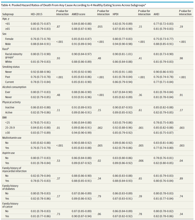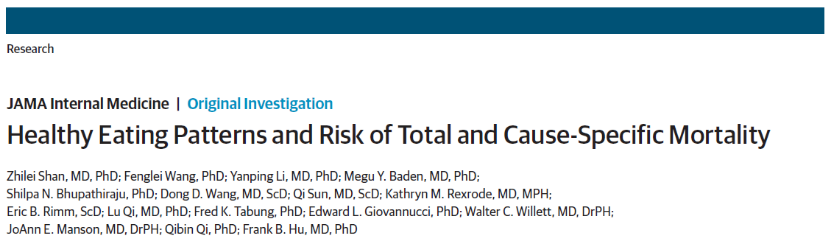 Shan Z, Wang F, Li Y, et al. Healthy Eating Patterns and Risk of Total and Cause-Specific Mortality. JAMA Intern Med. Published online January 09, 2023. doi:10.1001/jamainternmed.2022.6117