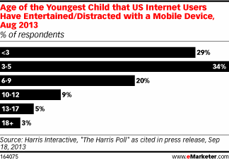 根据2013年8月Harris Interactive所做的调查,将近2/3的美国成年人分享或买过移动设备给5岁及以下的小孩。虽然移动设备未来的影响仍不明朗——很多人担心智能手机和平板会分散小孩的注意力,而另一些人则夸大了移动设备的教育功能,但是毫无疑问的是,移动设备已经成了许多小孩的日常用品。