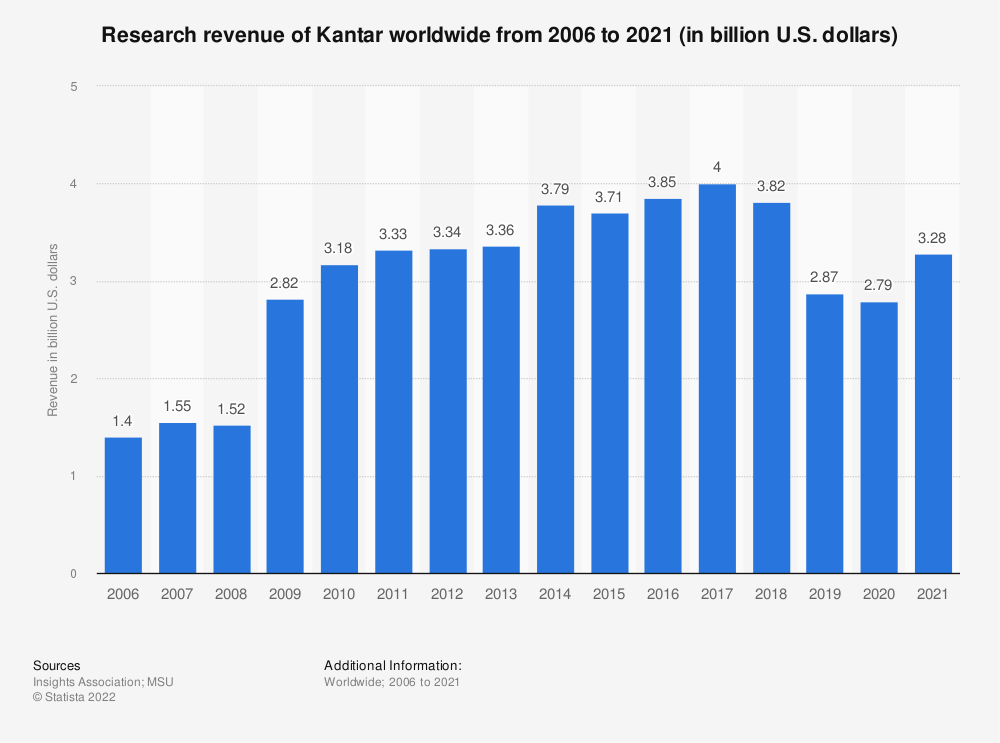 2021年,凯度在全球范围内创造了约33亿美元的研究收入。