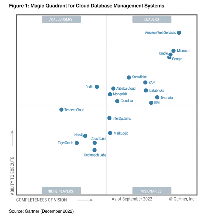 (报告全文请访问:2022 Gartner Magic Quadrant for Cloud Database Management Systems)