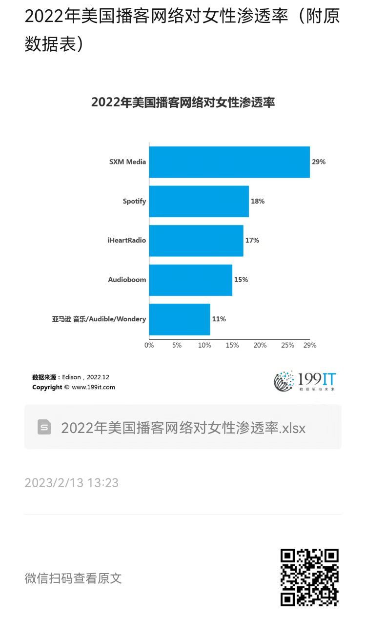 2022年美国播客网络对女性渗透率(附原数据表) ​​​​