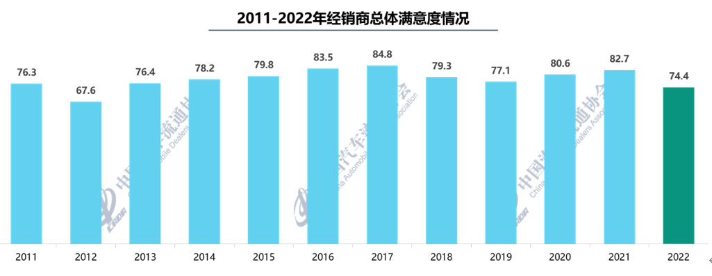 调查显示,经销商总体满意度得分为74.4分,经销商对厂家的总体满意度明显下降。