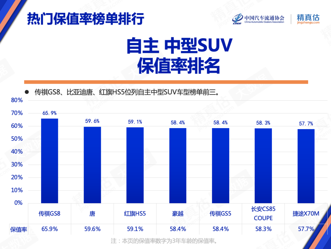 通过保值率数据来关注过去市场环境、行业动向、企业发展和保值率之间的关系,同时在微观层面也能反映该品牌的产品力、认知度、美誉度等综合实力。本榜单保值率价格数据采用良好车况下的二手车销售价(B2C)进行计算。以下是数据的表现排名: