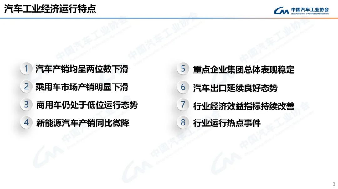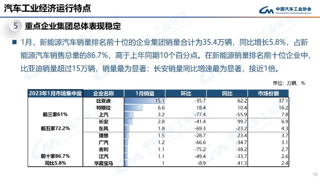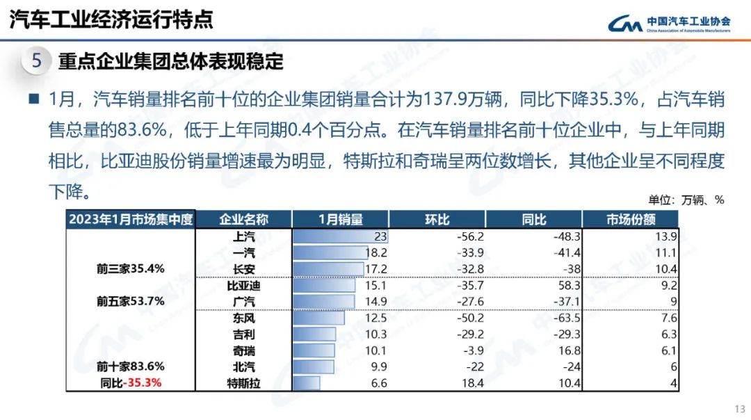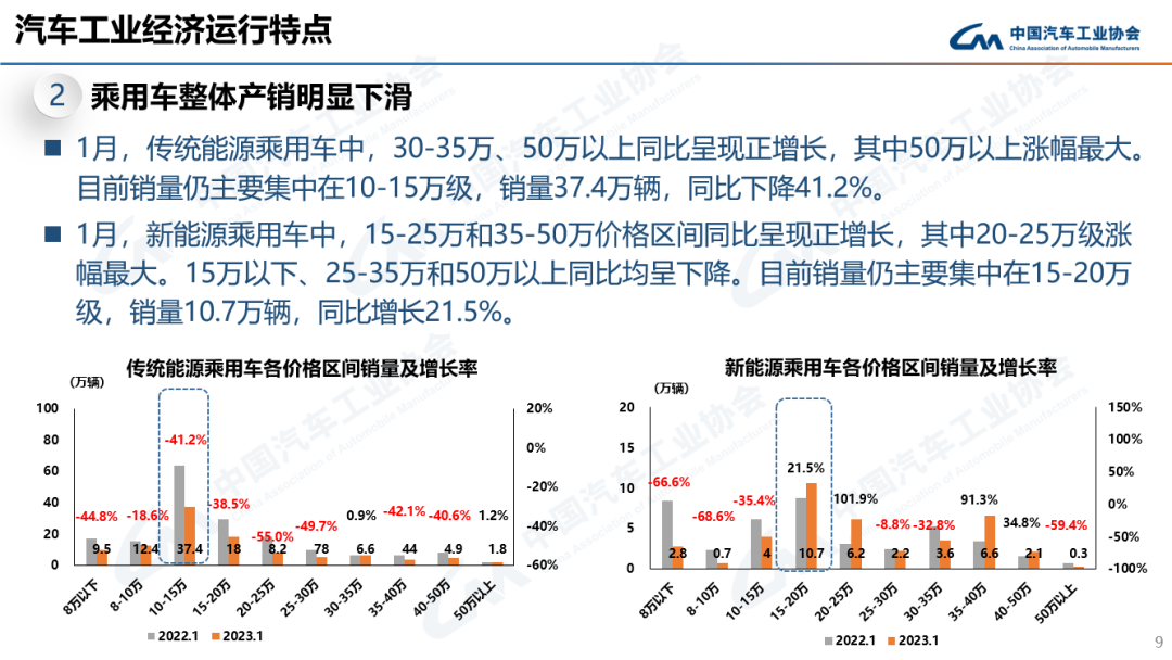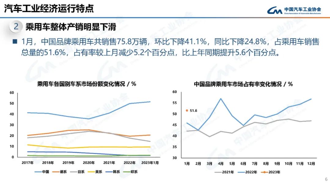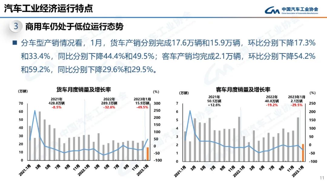 中国汽车工业协会:2023年1月汽车工业产销情况 据中国汽车工业协会统计分析,2023年1月,受春节假期及部分消费需求提前透支影响,叠加传统燃油车购置税优惠和新能源汽车补贴政策退出,汽车市场表现平淡,产销环比、同比均呈现两位数下滑。 更多阅读:中国汽车工业协会: 2023年5月汽车工业产销情况中国汽车工业协会:2023年7月汽车工业产销情况中国汽车工业协会:2023年3月汽车工业产销情况中国汽车工业协会:2023年8月汽车工业产销情况中国汽车工业协会:2022年11月汽车工业产销情况中国汽车工业协会:2022年汽车工业产销情况中国汽车工业协会:2022年3月前十位轿车品牌销量排名中国汽车工业协会:2023年1-2月我国汽车商品出口金额前十国情况简析中国汽车工业协会:2021年5月汽车工业运行情况简述中国汽车工业协会:2023年2月汽车工业产销情况中国汽车工业协会:2022年10月中国汽车工业经济运行情况中国汽车工业协会:2020年11月汽车工业经济运行情况中国汽车工业协会: 2024年7月汽车工业产销情况中国汽车工业协会:2021年4月中国汽车工业经济运行情况中国汽车工业协会:2023年4月中国品牌乘用车销售简析