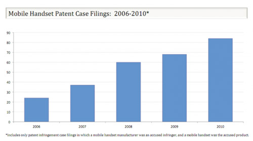 Lex Machina:2006年来移动行业专利官司每年增加25% 专利法务行业的Lex Machina发表了一项有关专利诉讼的最新的研究数据,数据显示在过去几年中移动行业相关的专利每年增长25%,到今年8月美国境内提起的移动专利诉讼就达到了所有专利诉讼的8%(294起中的24起)。苹果通常是专利纠纷的核心角色,尽管不一定都是攻击者。 还有HTC、摩托罗拉、三星和其它Android制造商也是法院常客。最近的Wi-LAN公司更是一举将他们全部送上了法院。 更多阅读:Accengage:Android设备推送通知互动率是iOS的3倍eMarketer:Android系统美国智能手机份额继续攀升Android的发展和碎片化–数据信息图comScore:2011年7月Android在欧洲份额已超过iOS 第一仍为SymbianGartner:Android主导全球智能手机市场Nielsen:美国手机用户平均每名智能手机用户拥有41款应用SimplyHired:2012年2月移动开发行业趋势地瓜游戏中心:2011年12月中国Android热门机型Top20comScore:2011年9月加拿大智能手机市场份额 Android占25%VisionMobile:移动平台生态系统研究报告Google:截止2011年9月14日超过 50%Android 设备依然运行 2.2 版本信息图:你应该知道的Android用户的7件事情图解数据:Android付费习惯正在养成comScore:2011年7月Android 和 Apple 占 70%美国智能手机市场谷歌:2017年度Android安全报告