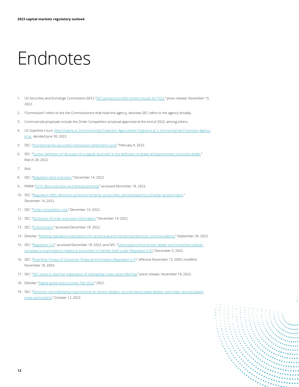 到 2023 年,预计资本市场监管将对企业和市场产生广泛影响,德勤确定了企业可能需要考虑的三个关键主题: