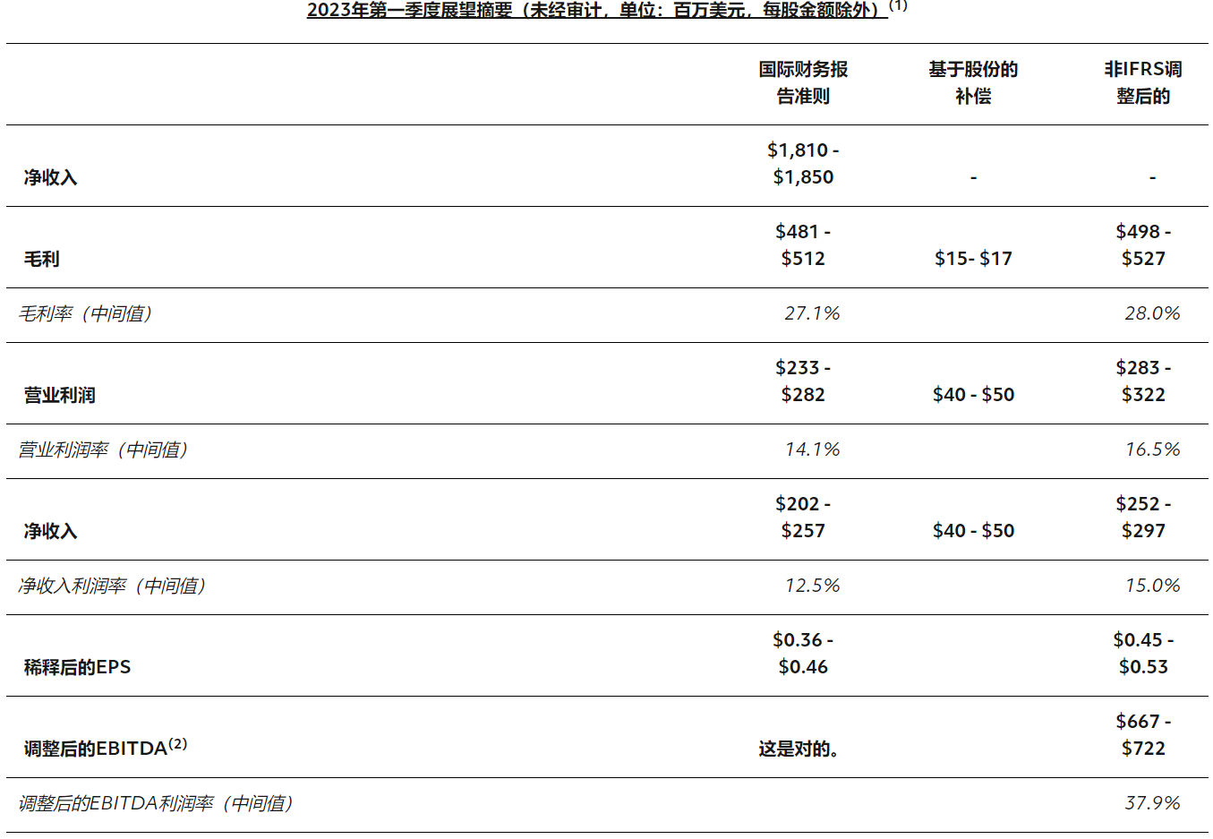 附格芯 2022Q4 及全年财报详情,以及 2023Q1 财报展望: