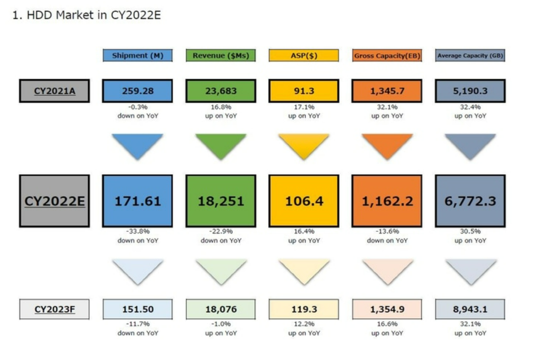 又到了HDD机械硬盘卖惨的时候了,这次的信息来自日本硬盘驱动器协会的会议报告,分析了2022年硬盘的出货情况,还预测了2023年的表现,当然还是会继续下滑。卖不动了。