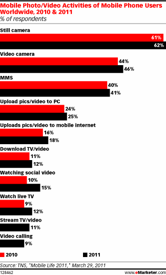来自TNS的数据显示,46%的手机用户使用他们的摄像头,