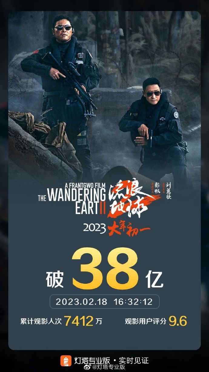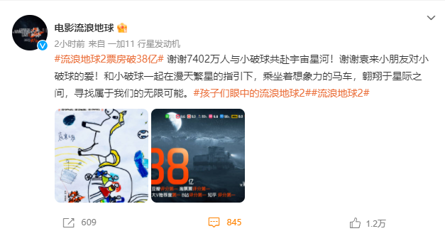 电影流浪地球官方也发布了票房突破38亿的消息,并感谢“7402万人与小破球共赴宇宙星河!”