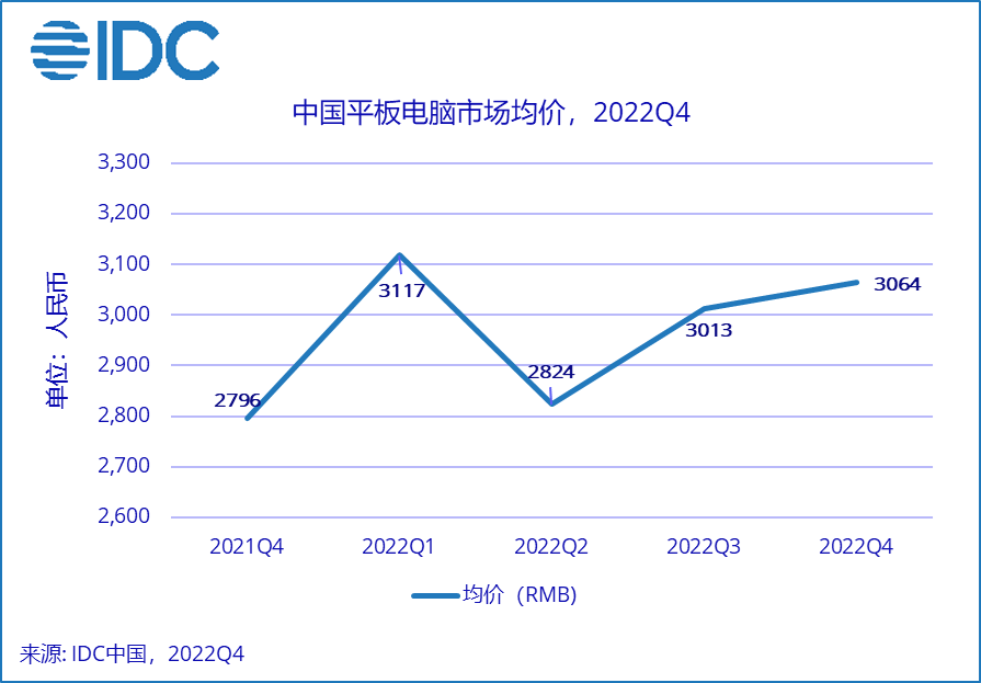 从2022年四季度平板电脑整体价格趋势看,虽然厂商借助双十一提前进行了促销活动,但受到Apple等品牌厂商中高价位段出货量增长拉动以及国际汇率等多因素影响,2022年第四季度中国平板电脑市场平均单价环比上涨1.7%。