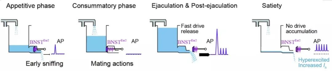 至此,研究者确定,过度兴奋的BNSTEsr2神经元能够持续地编码两性动物的性饱足状态。
