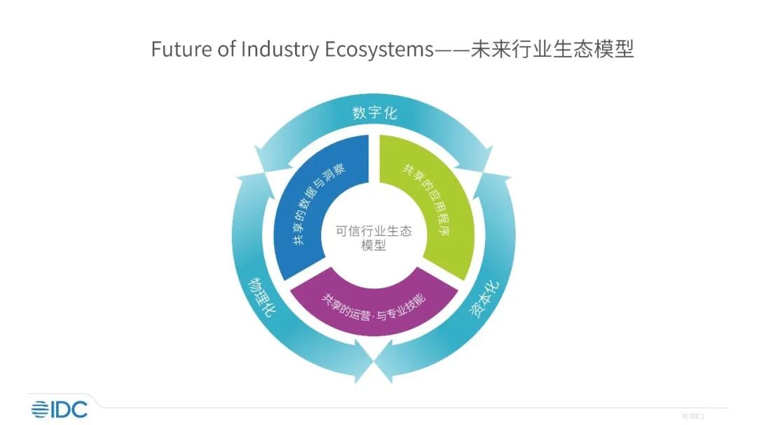 IDC认为,数字主权是国家、公司或个人可自主进行的数字化选择的能力。借助于行业生态所倡导的共享数据和洞察、应用程序、运营/操作和专业技能,不仅可有效提升公司的竞争力,并在(虚拟)合资企业中实现盈利;而且可提升行业生态参与成员的价值;同时也可促进政府提升公共数据和服务的标准化和互操作性。通过共享生态的建设也可极大地推动促进可信交易的社会治理结构被广泛接受和采用。