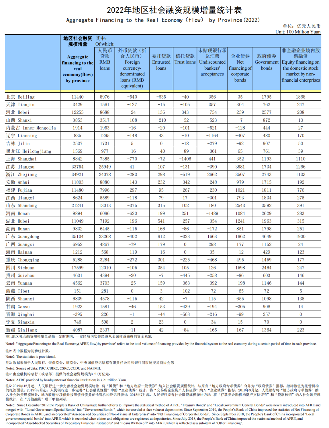 中国人民银行:2022年地区社会融资规模增量统计表 更多阅读:中国人民银行:2021年一季度地区社会融资规模增量统计表中国人民银行:2022年上半年地区社会融资规模增量统计表中国人民银行:2022年一季度地区社会融资规模增量统计表中国人民银行:2023年上半年地区社会融资规模增量统计表中国人民银行:2023年一季度社会融资规模增量统计数据报告人民银行:2023年一季度地区社会融资规模增量统计表中国人民银行:2022年前三季度社会融资规模增量统计数据报告中国人民银行:2022年8月社会融资规模增量统计数据中国人民银行:2022年上半年社会融资规模增量统计数据报告中国人民银行:2023年8月社会融资规模增量统计数据中国人民银行:2023年2月社会融资规模增量统计数据报告中国人民银行:2023年1月社会融资规模增量统计数据中国人民银行:2022年一季度社会融资规模增量统计数据报告中国人民银行:2021年10月社会融资规模增量统计数据报告中国人民银行:2021年2月社会融资规模增量统计数据