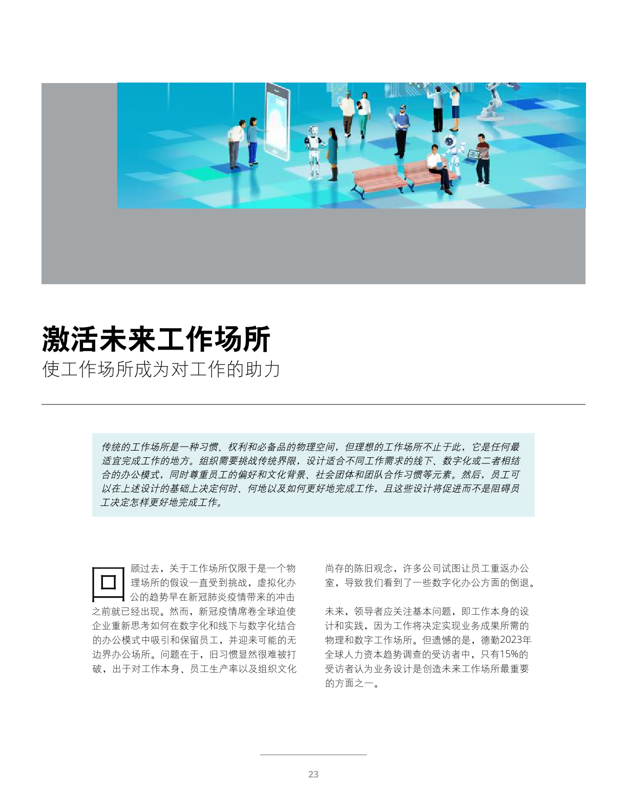 迈入2023年,虽然新冠疫情的全球危机已经初步消退,但工作模式仍在以惊人的速度发生变化。组织和员工的当务之急是了解新的基本法则并转变工作模式,在如今“无边界的世界”中找到未来发展方向。