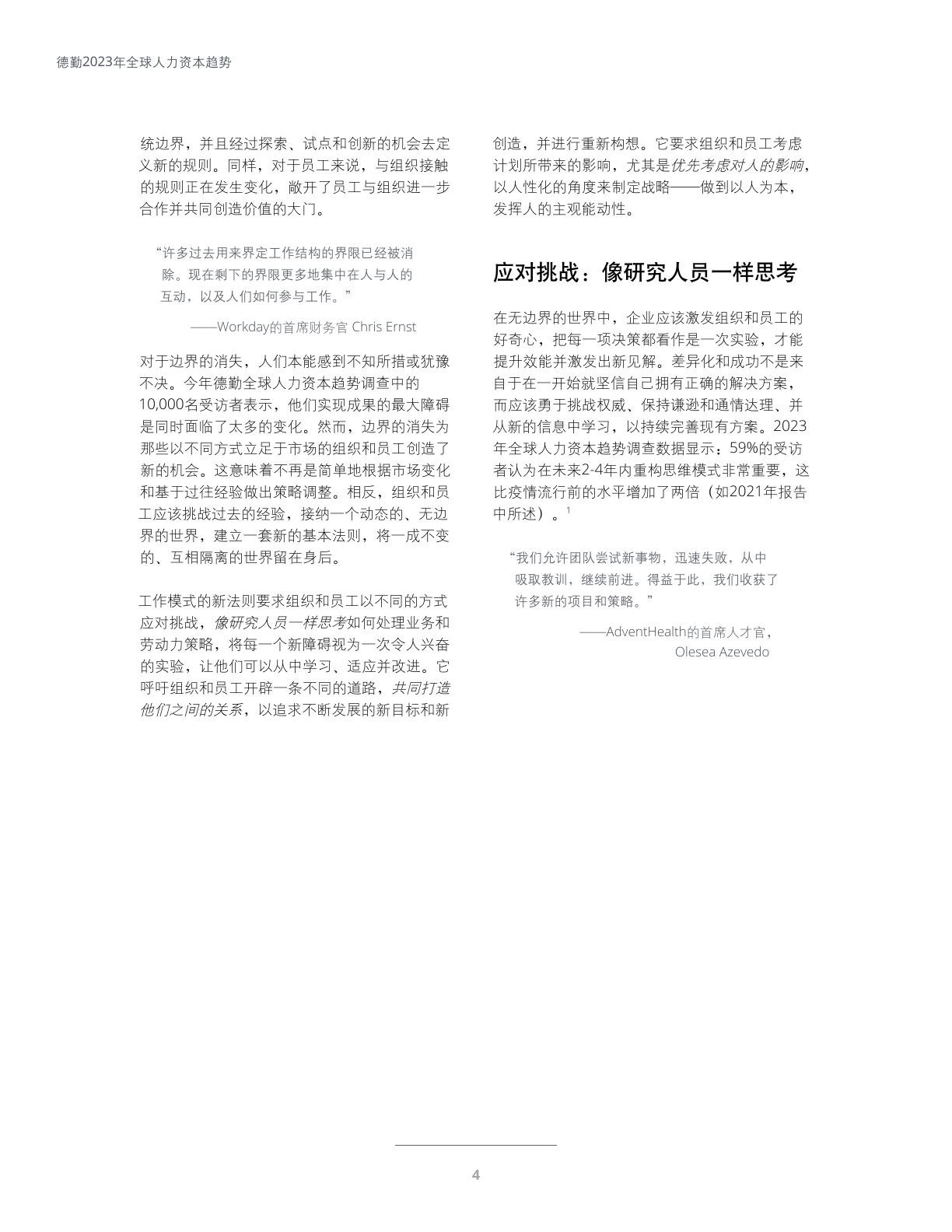 2023年全球人力资本趋势调查数据显示:59%的受访者认为在未来2-4年内重构思维模式非常重要,这比疫情流行前的水平增加了两倍。以下三个趋势说明了组织和员工需要像研究人员一样思考。