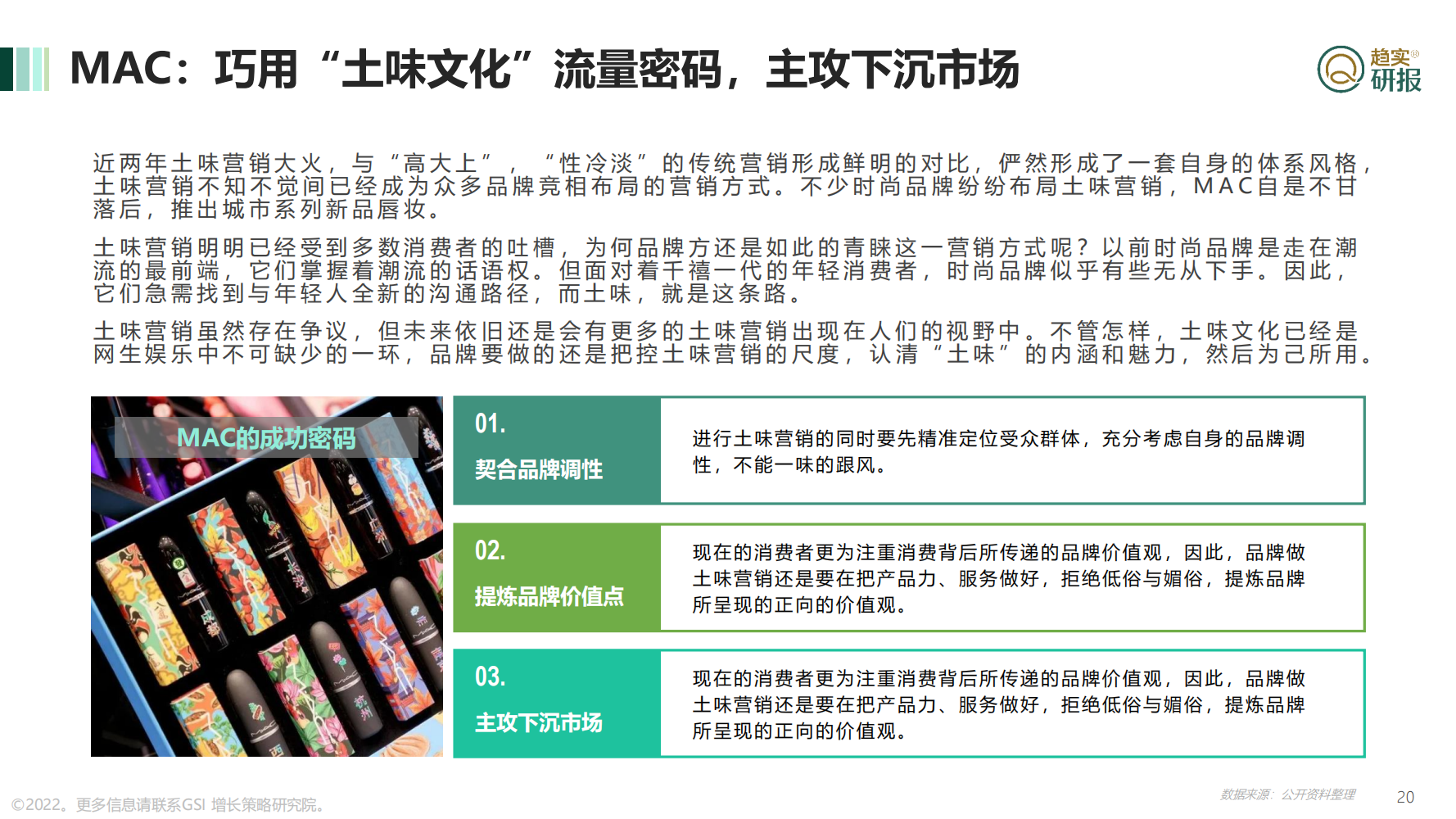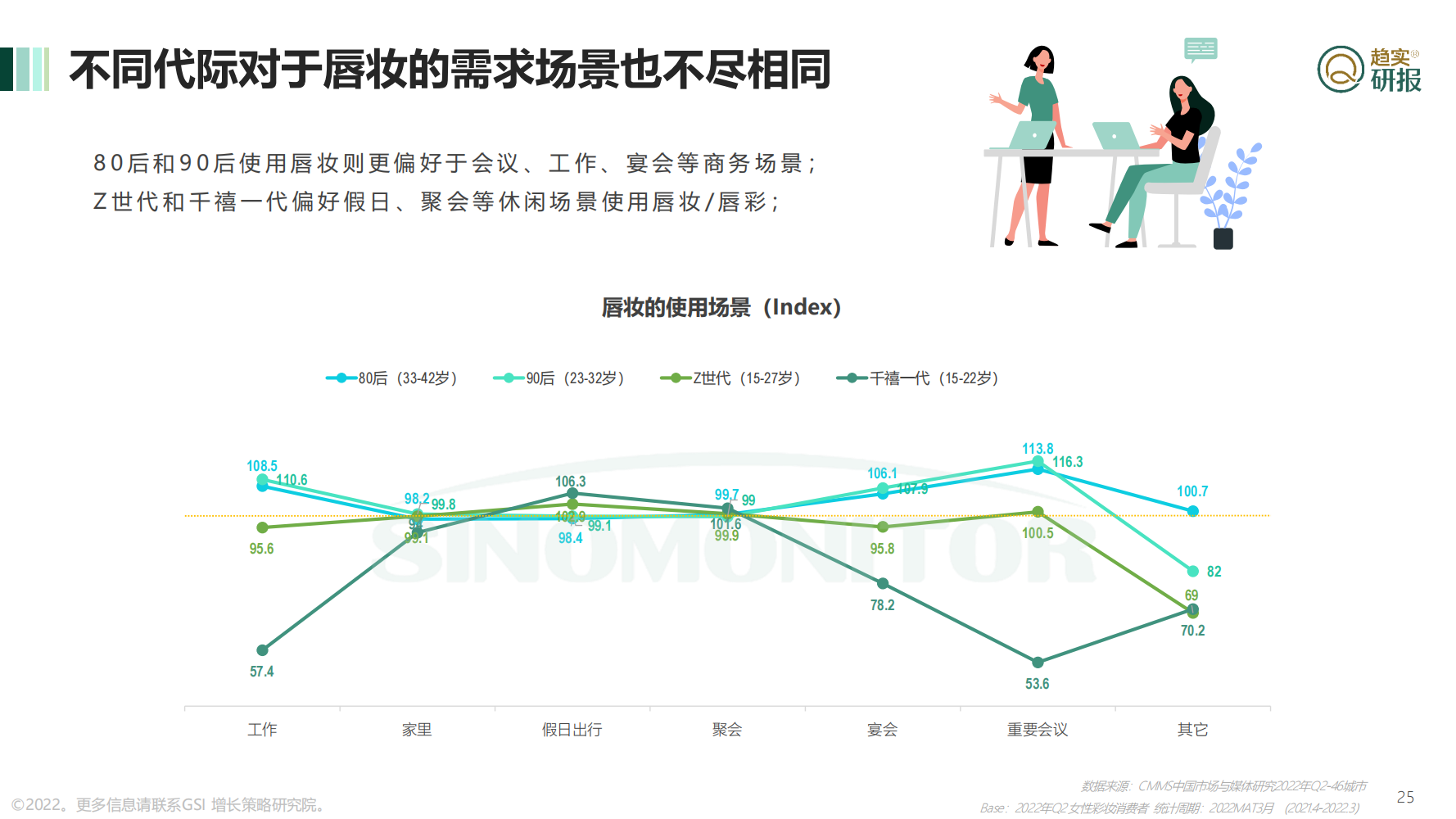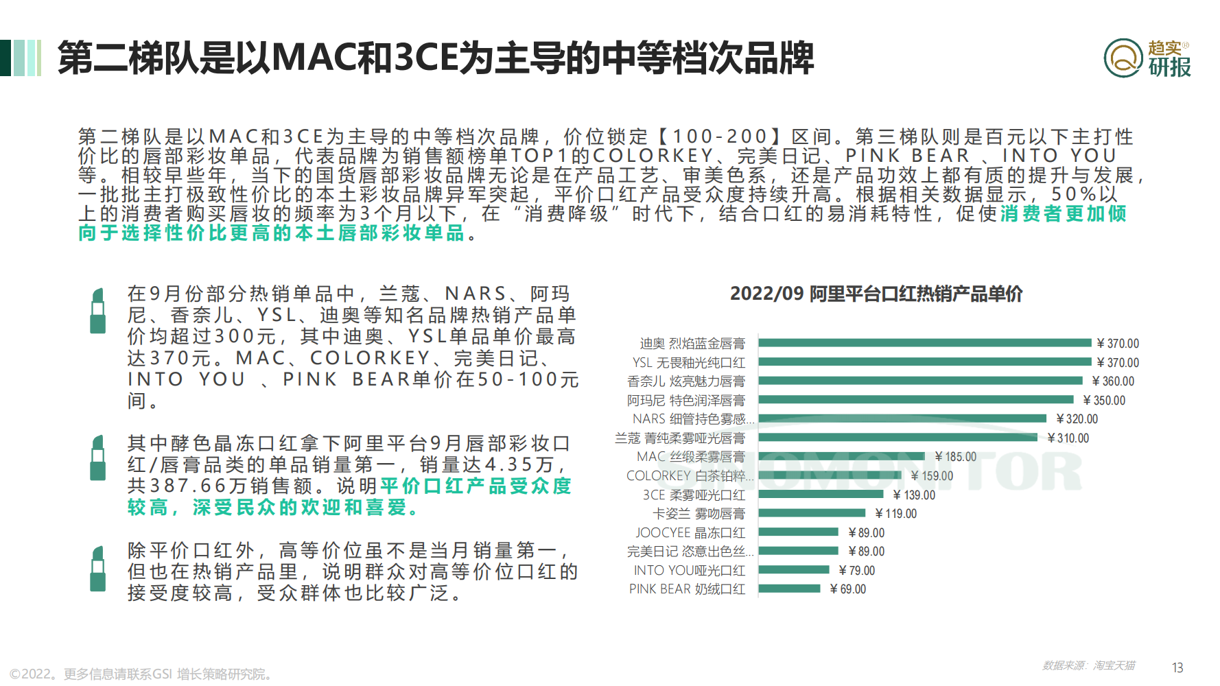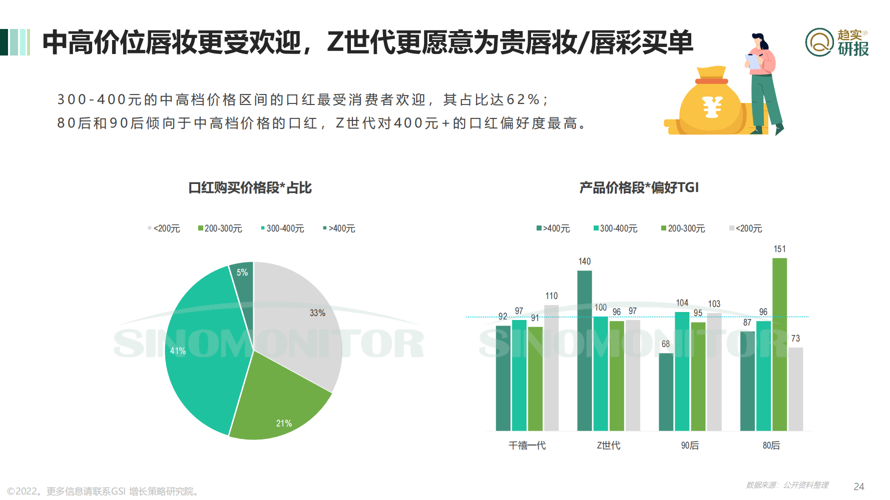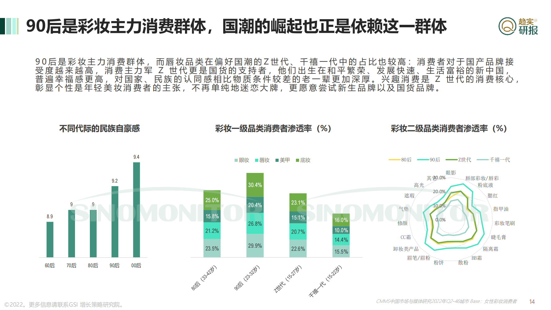 近几年,随着彩妆市场规模不断增长,国货彩妆品牌崛起,社交电商兴盛,内容营销兴起,疫情带来的消费需求变化,中国彩妆消费市场也迎来了很大的变化,消费者对于各细分品类的诉求不尽相同。目前彩妆市场规模接近千亿,且高增长确定性较强,但行业随潮流变化快,产品同质化强,品牌在营销端、价格端竞争激烈。整体看近三年国际高端品牌与国货新锐品牌表现突出,未来在疫情结束经济向好的大趋势下,预计新锐国货品牌仍然会是重要增长点。彩妆市场最开始让市场大众消费者接受的就是口红,在生活水平的提高下对于其他彩妆的需求也逐渐增加。在现在颜值经济的时代,自拍和自媒体发展下更加促进了彩妆市场的发展,未来市场会更加多元化。