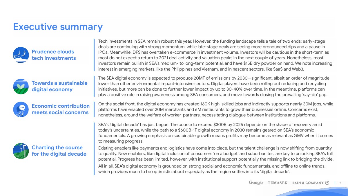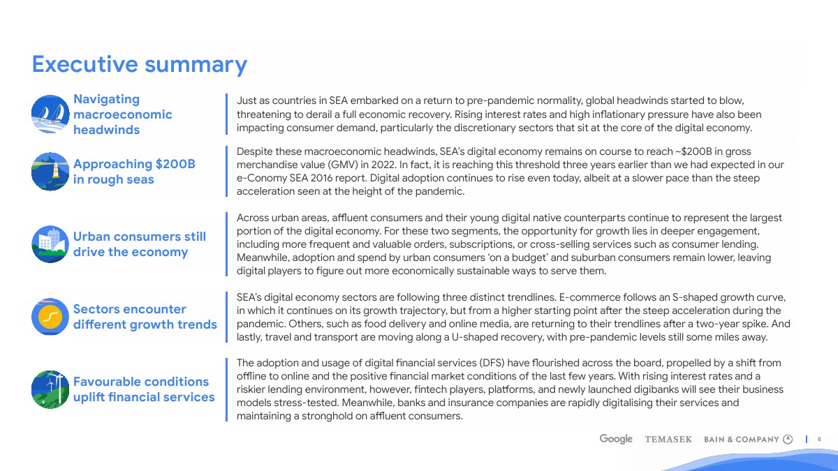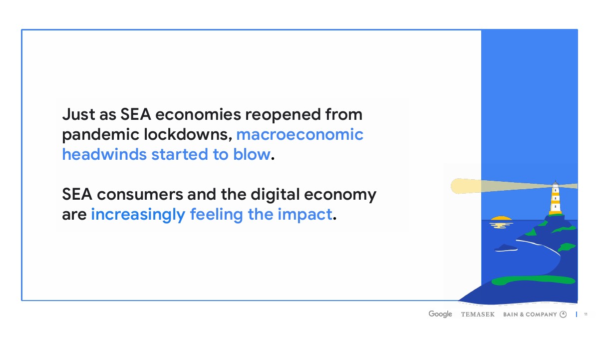 正当东南亚国家开始恢复大流行前的正常状态时,全球逆风开始袭来,有可能破坏全面的经济复苏。利率上升和高通胀压力也一直在影响消费者需求,尤其是处于数字经济核心的可自由支配行业。