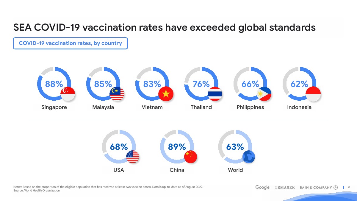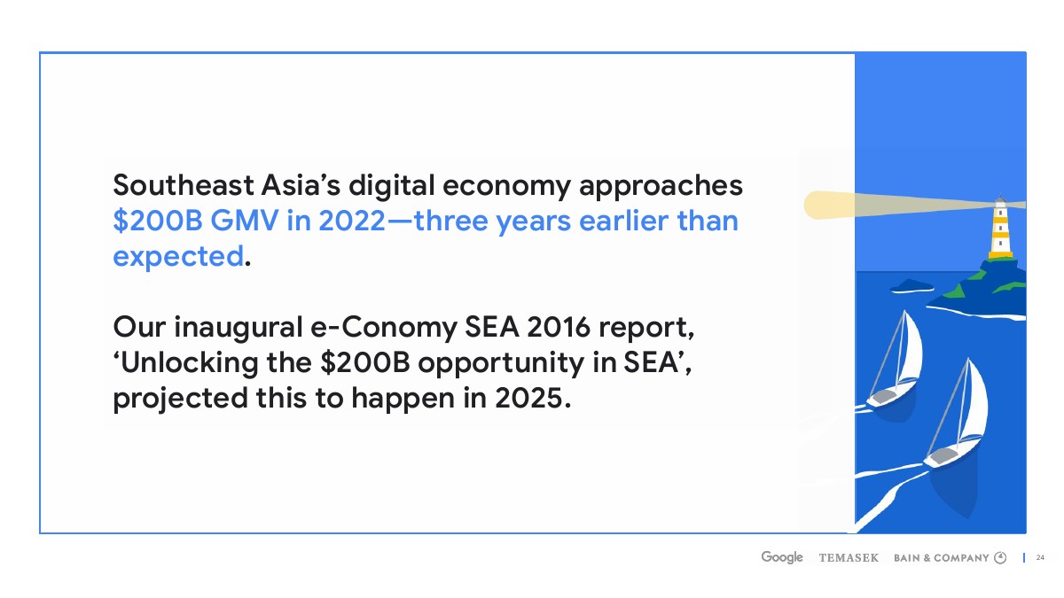 尽管存在这些宏观经济逆风,SEA 的数字经济仍有望在 2022 年达到约 2000亿美元的总值(GMV)。事实上,它提前三年达到预期门槛。即使在今天,数字采用率仍在继续上升,尽管速度低于大流行高峰时。