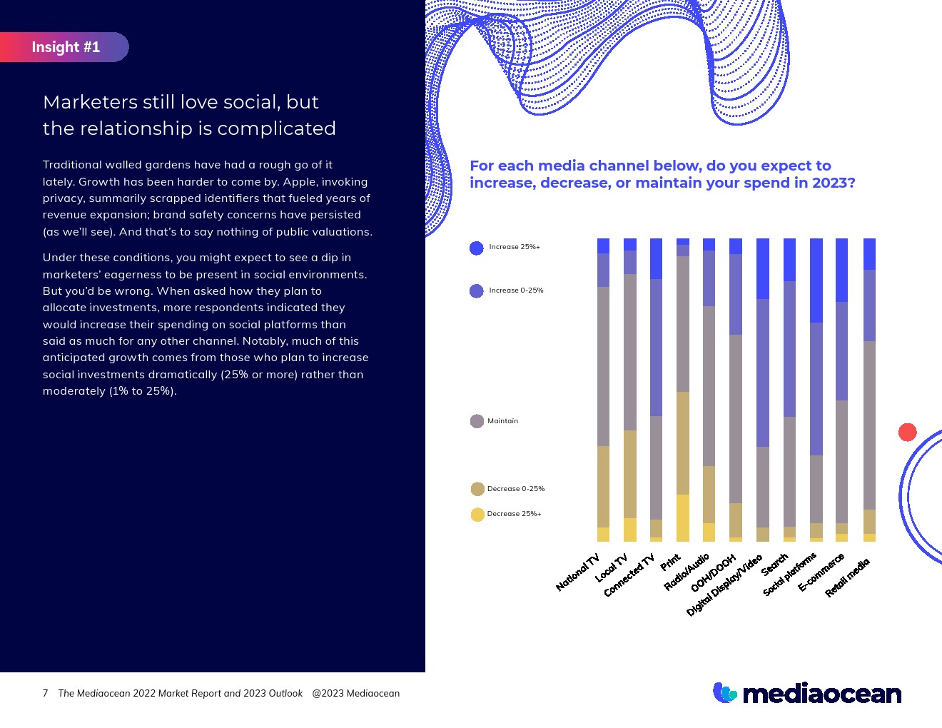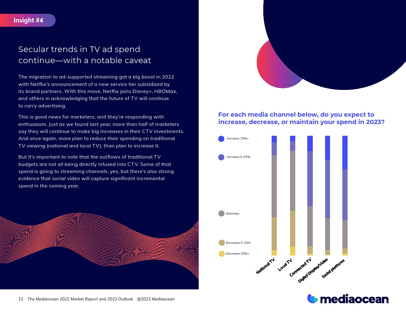 鉴于对 TikTok 和社交视频的关注,受访者最看好今年社交平台的支出增长也就不足为奇了。 大多数人还计划增加他们在数字展示/视频和联网电视上的支出,电子商务作为另一个值得关注的消费趋势预计也将经历增长。