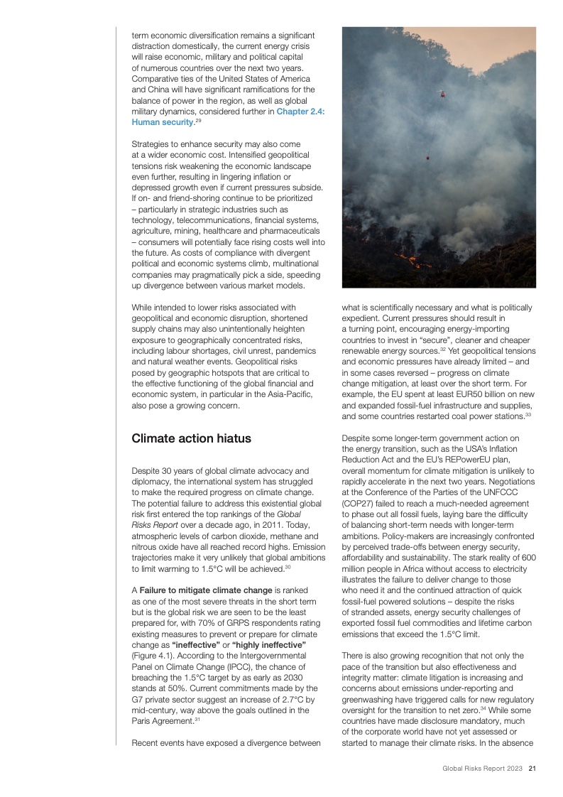 未来几年,政府将在社会、环境和安全事务之间面临艰难的权衡取舍。短期的地缘经济风险已经让各国的净零承诺面临考验,并且导致科学必要性和政治可行性之间出现分歧。为了限制全球变暖带来的后果,国际社会需加速开展集体行动,共同应对气候危机。同时,鉴于安全考量和军费开支不断增加,可以动用的财政空间越来越小,难以缓冲持续生活成本危机带来的影响。如果现有的发展路径不改变,脆弱国家将会陷入长期的危机状态,从而无力投资于未来增长、人力资源发展和绿色科技。