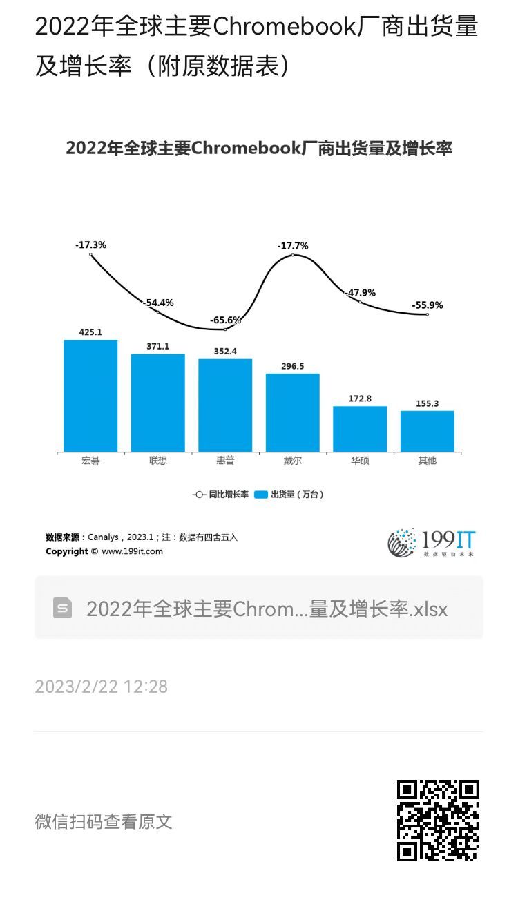 - 2022年Q4全球主要Chromebook厂商出货量及增长率(附原数据表)