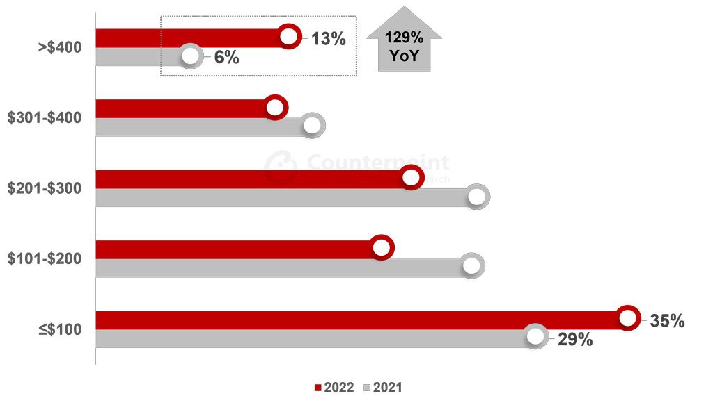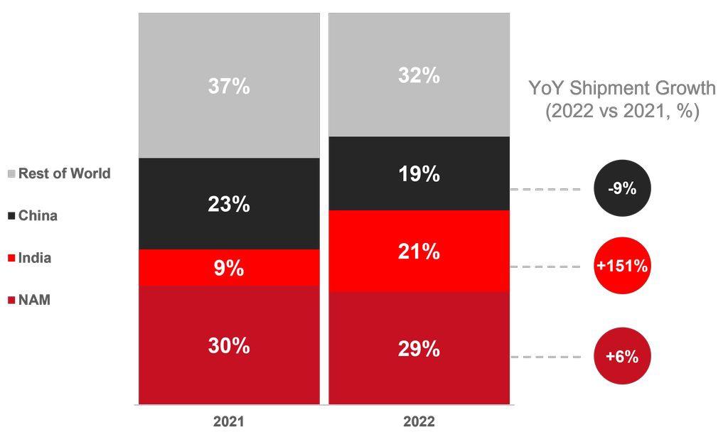 Counterpoint 分析师报告称:“这是自 2020 年大流行病席卷全球以来市场八个季度以来的首次负增长”。Counterpoint 认为下降是“在通货膨胀压力和印度增长放缓的情况下”发生的。