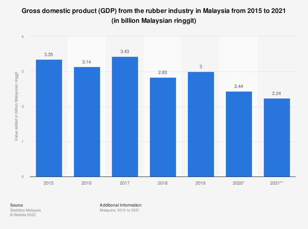 然而,马来西亚的橡胶工业多年来一直面临着一些挑战,橡胶价格下降,过度依赖小农的天然橡胶生产。因此,与前几年相比,该行业对GDP的贡献有所下降。