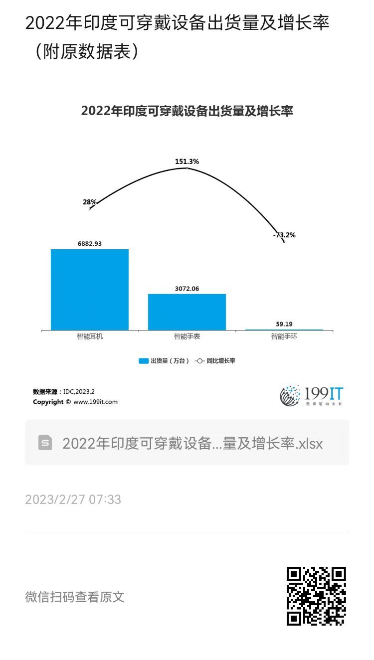 - 2022年Q4印度可穿戴设备出货量及增长率(附原数据表)