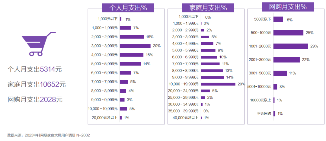 • 智能电视的用户消费能力较强,网购月支出在2K/户左右。
