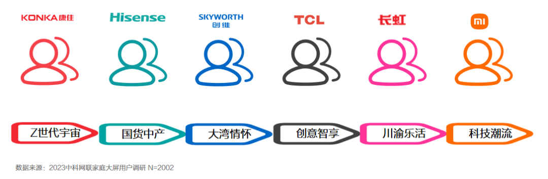 • 品牌拟人-通过对智能电视用户的调查研究发现,不同品牌的消费者具有各自的独特属性,圈层聚集。