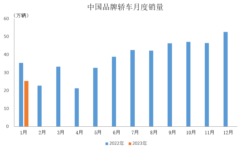 中国汽车工业协会: 2023年1月中国品牌乘用车销售简析 据中国汽车工业协会统计分析,2023年1月,中国品牌乘用车销售75.8万辆,环比下降41.1%,同比下降24.8%,占乘用车销售总量的51.6%,占有率较上月减少5.2个百分点,比上年同期提升5.6个百分点。 2023年1月,中国品牌轿车、SUV和MPV市场占有率分别为39.2%、61.4%和52.6%,与上月相比,中国品牌SUV市场占有率微降,轿车和MPV明显下降;与上年同期相比,中国品牌轿车、SUV和MPV市场占有率均呈小幅增长。 更多阅读:中国汽车工业协会:2023年4月中国品牌乘用车销售简析中国汽车工业协会:2024年6月中国品牌乘用车销售情况简析中国汽车工业协会:2022年中国品牌乘用车销售简析中国汽车工业协会:2023年3月中国品牌乘用车销售简析中国汽车工业协会:2023年2月中国品牌乘用车销售简析中国汽车工业协会:2022年11月中国品牌乘用车销售简析中国汽车工业协会:2022年5月中国品牌乘用车销售简析中国汽车工业协会:2023年7月中国品牌乘用车销售情况简析中国汽车工业协会:2023年上半年中国品牌乘用车销售情况简析中国汽车工业协会: 2022年8月中国品牌乘用车销售简析中国汽车工业协会:2022年3月中国品牌乘用车销售情况简析中国汽车工业协会:2022年4月中国品牌乘用车销售简析中国汽车工业协会:2021年10月中国品牌乘用车销售情况简析中国汽车工业协会:2021年9月中国品牌乘用车销售情况简析中国汽车工业协会:2021年前8月中国品牌乘用车市场份额显著提升