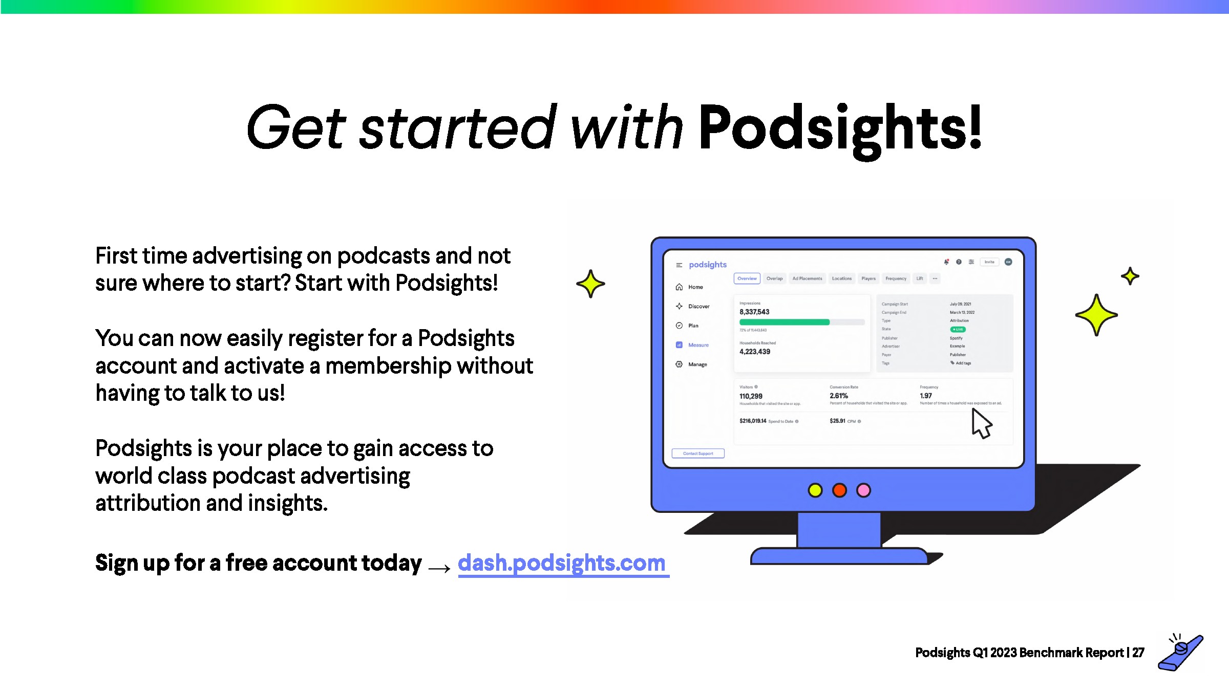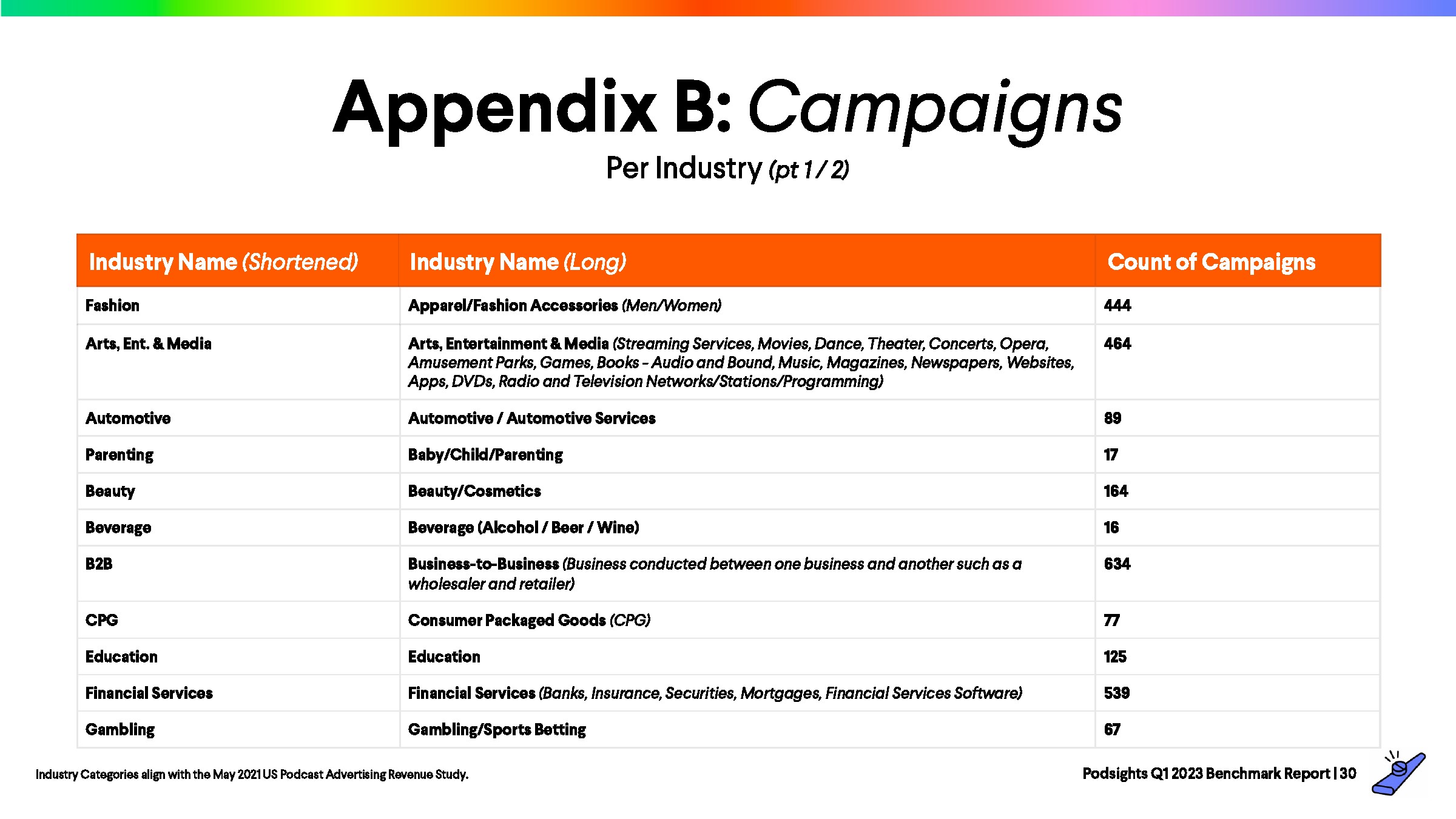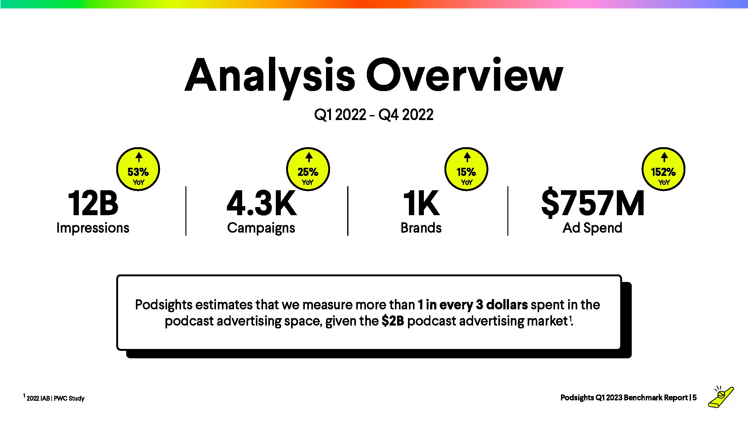 Podsights发布了“2023年第一季度播客指标报告”。考虑到价值20亿美元的播客广告市场,意味着每3美元中就有1美元以上花费在播客广告行业。