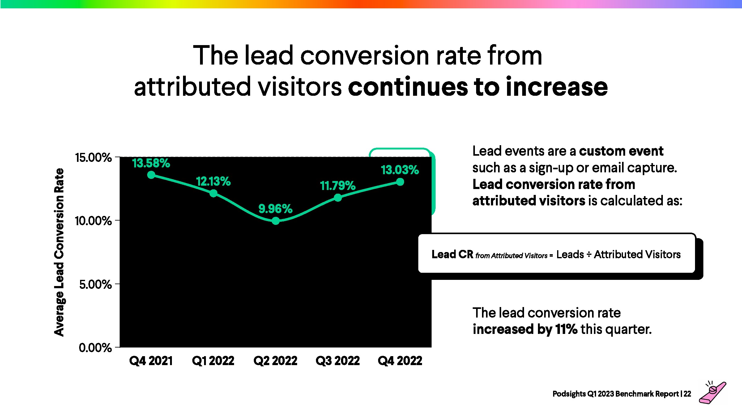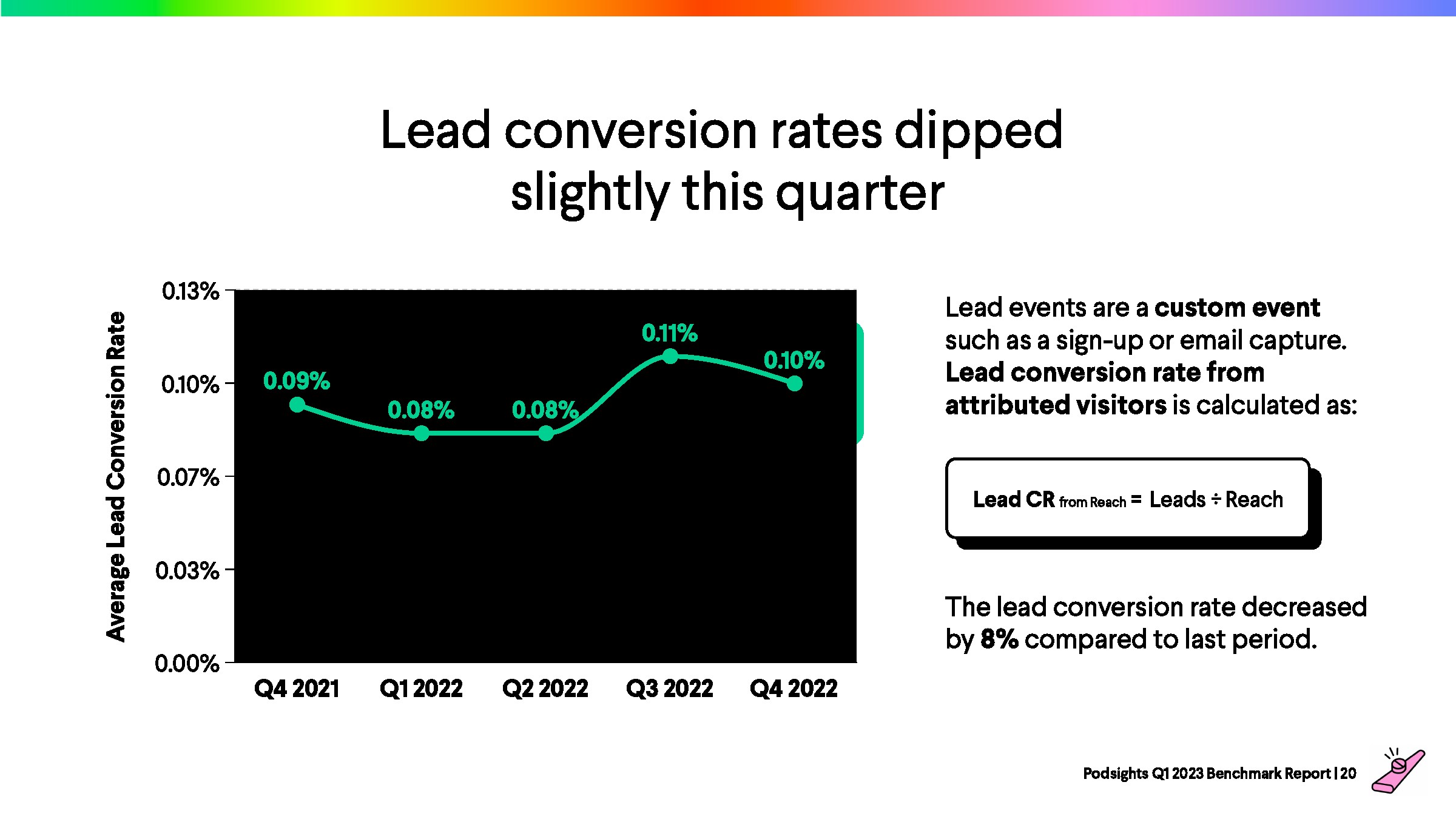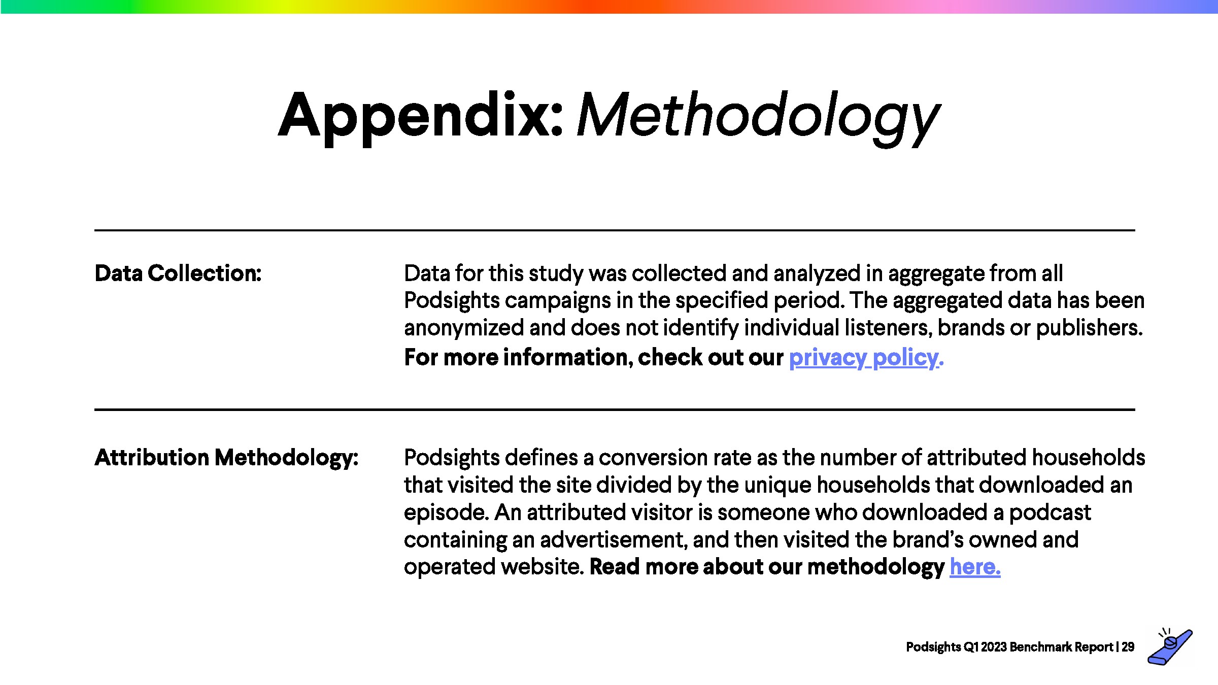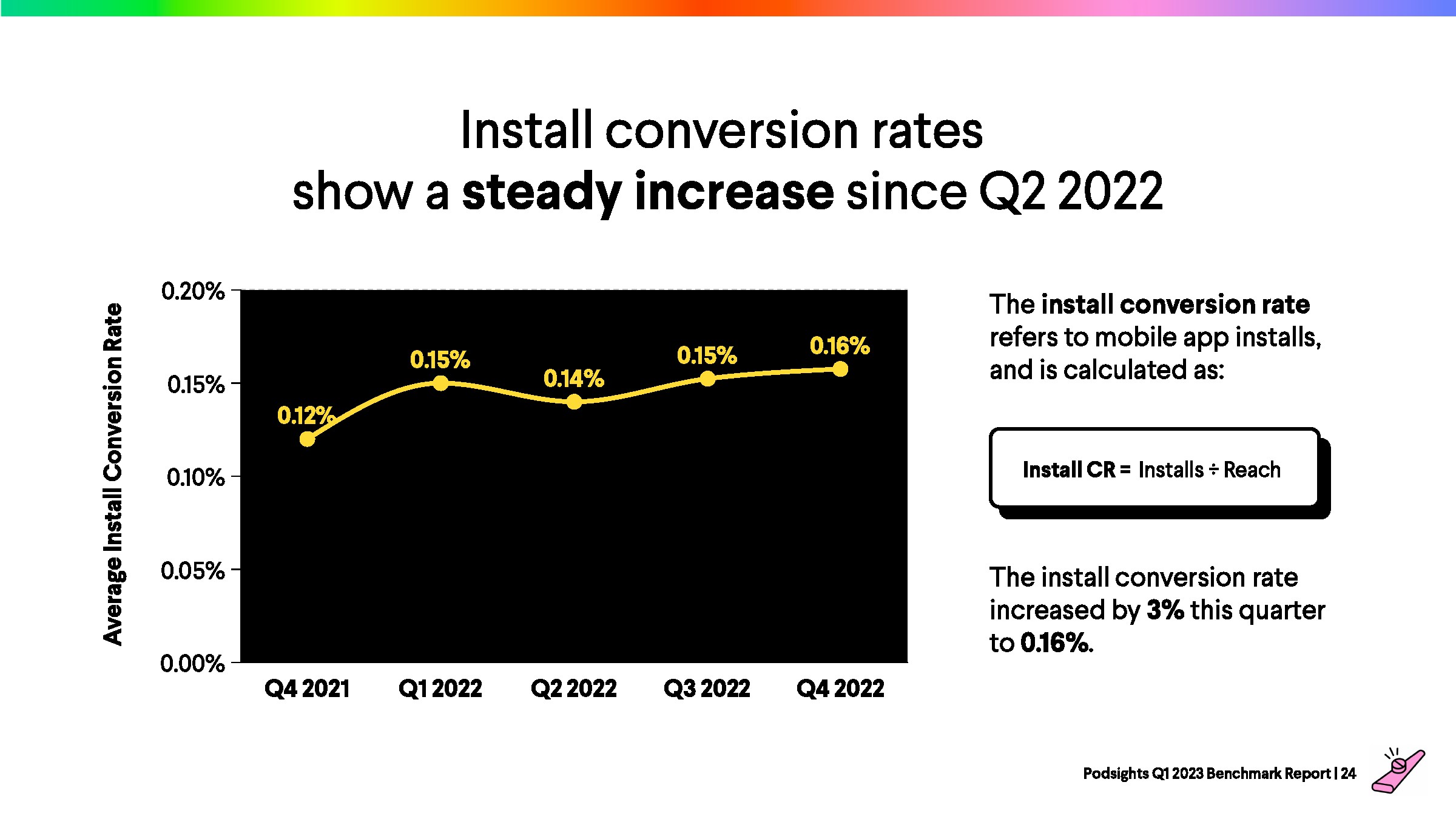 为了提高转化率,报告使用了Podsights关于活动规模、频率和转化率的基准数据,可以说明在不同展现水平下从播客广告活动中获得的效果。