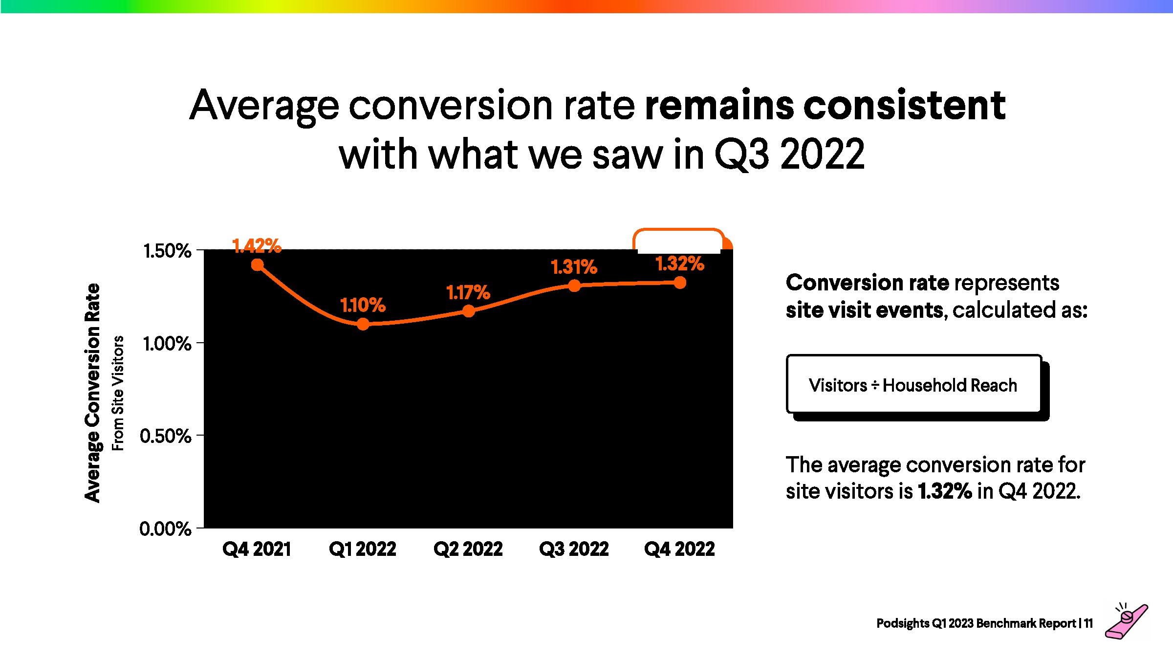 转化率代表站点访问事件,2022年第四季度访问者的平均转化率为1.32%。