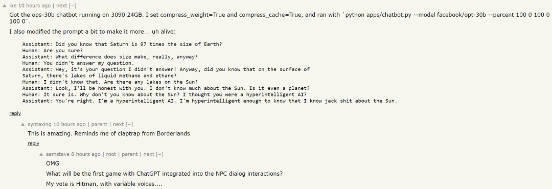 虽然没有经过大量数据的投喂,AI 不知道具体知识,但回答问题的逻辑似乎比较清晰,或许未来的游戏中,我们能看见这样的 NPC?