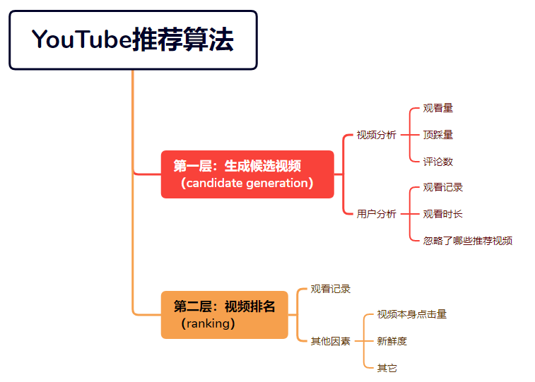 简单来说,YouTube推荐算法主要分为两层网络:候选池(candidate generation)和排名池(ranking)。