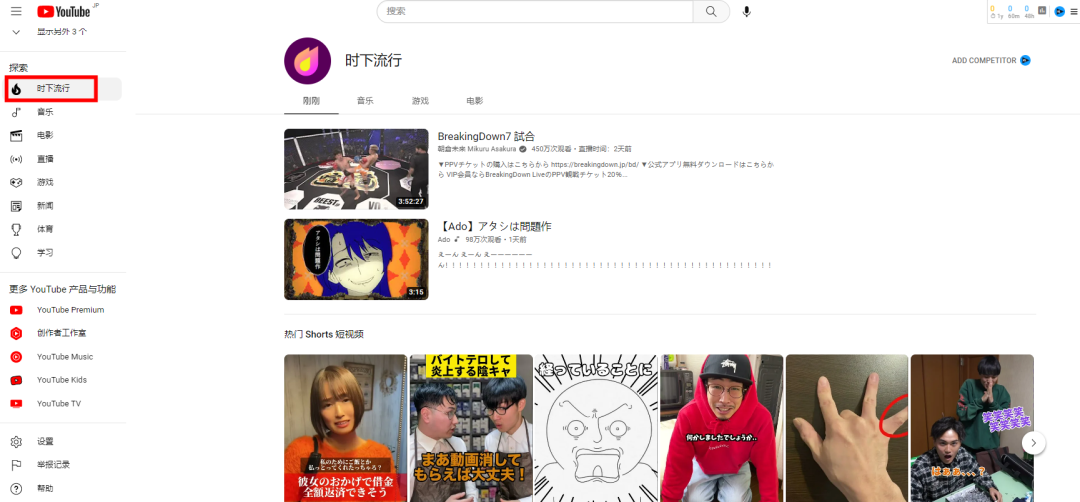 时下流行一般多为新发布的宣传片、音乐以及观看增长势头高涨的视频。