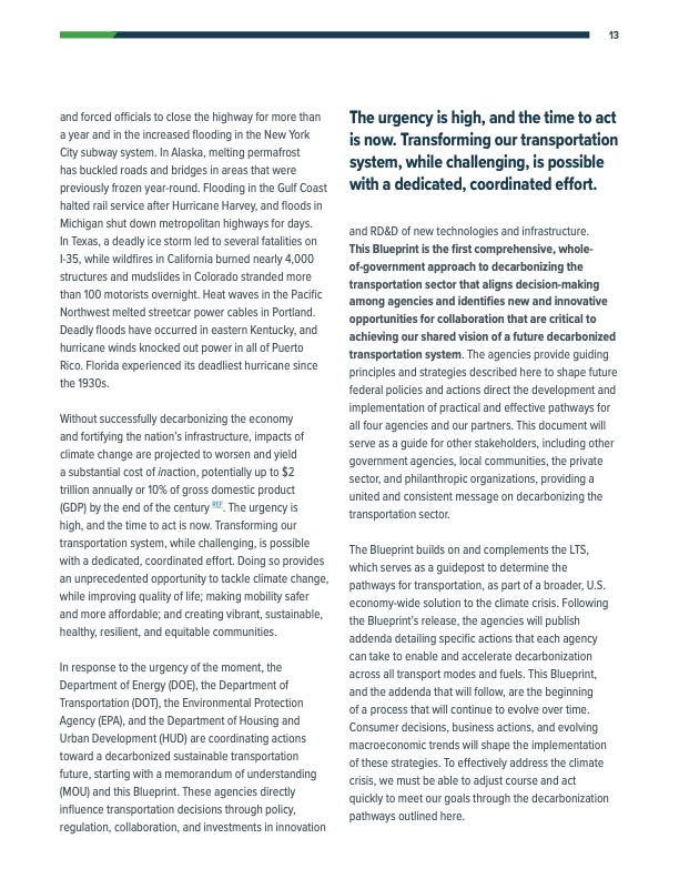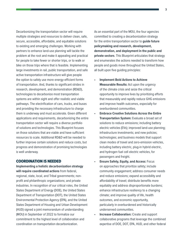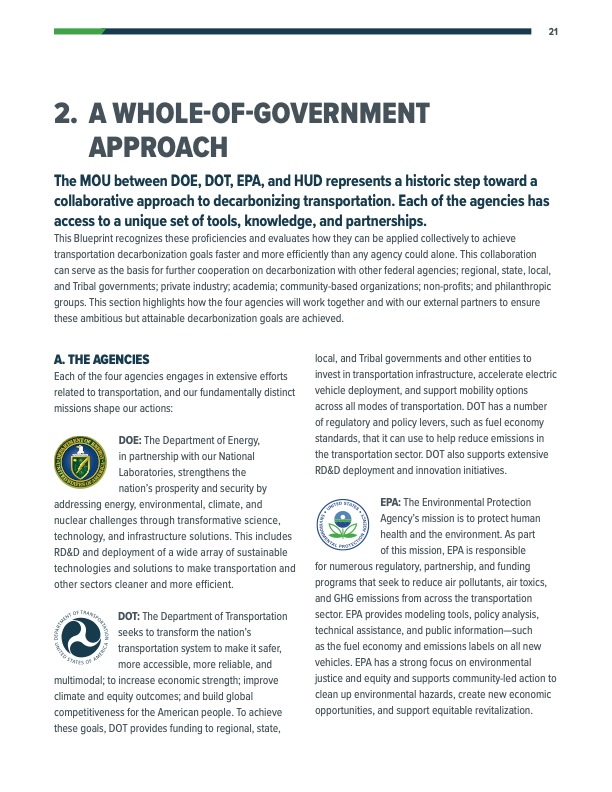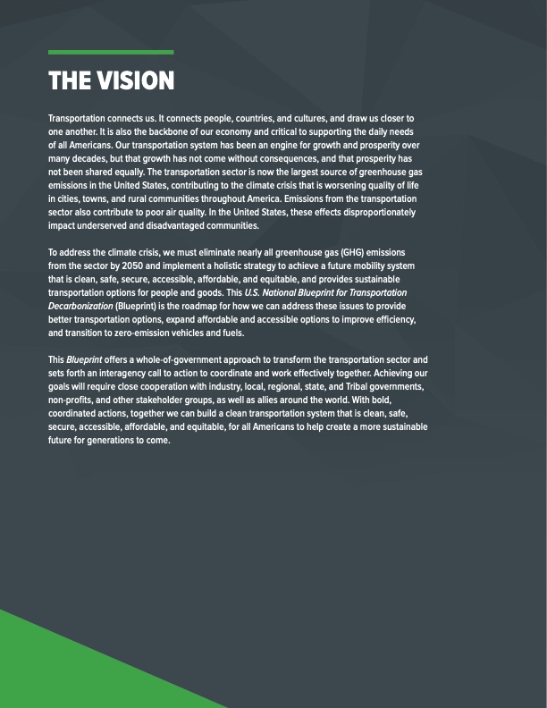 美国政府公布了由交通部、能源部、住房和城市发展部以及环境保护局共同制定的《交通部门脱碳蓝图》(The U.S. National Blueprint for Transportation Decarbonization)。为在2050年之前实现全美的净零排放,《蓝图》确定了一整套涵盖客运与货运、多种车辆类型和技术路线的解决方案。
