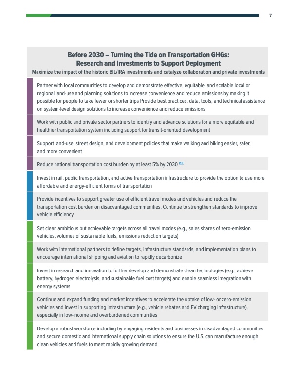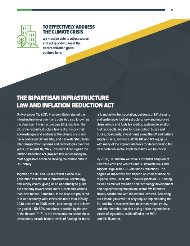 其中零排放的电动汽车被定义为新交通模式的基石,并提出了以下主要目标:到2030年,乘用车新车销量的50%实现零排放,中重型卡车新车销量的30%实现零排放,2040年达100%,建设一个有50万个电动车充电桩的充电网络。到2035年,所有联邦采购车辆中均为零排放车辆,确保支持清洁技术所需的基础设施到位。此外,《蓝图》也明确强调,此前拜登政府发布的《两党基础设施法案》和《削减通胀法案》是推动交通部门完成净零排放转型的前提。
