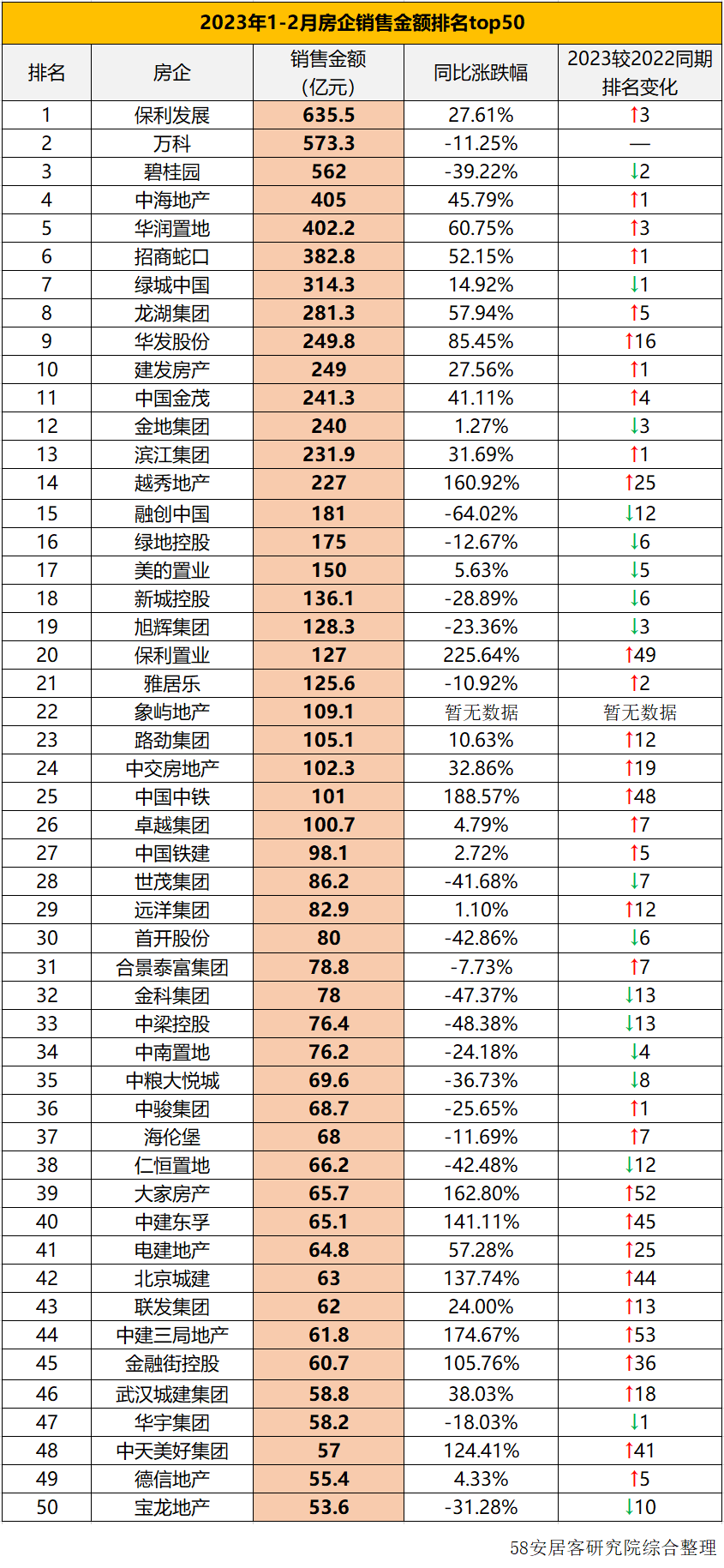 今年1-2月份,保利发展的销售金额累计为635.5亿元,为目前首个业绩突破600亿关口的开发企业。步入2023年,保利发展已连续两月稳居销售金额榜的冠军,这较2022年的座次更进一步。至此,保利发展“进三争一”的目标已然落到实处。