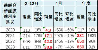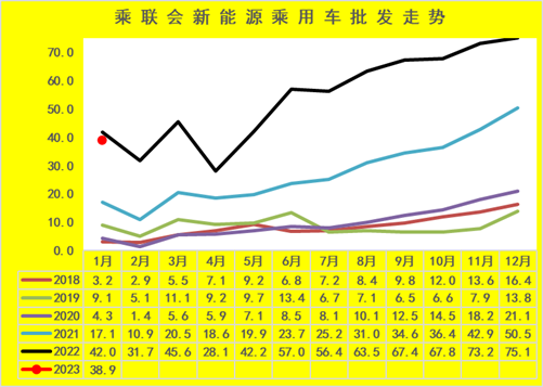 1月新能源乘用车批发销量达到38.9万辆,同比下降7%,环比降48%。12月出现的新能源销量走缓特征仍在延续。