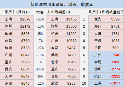1月的新能源车增长主力是二线大城市表现仍较强。1月的新能源车增长主力是西安、郑州等非限购核心大城市。
