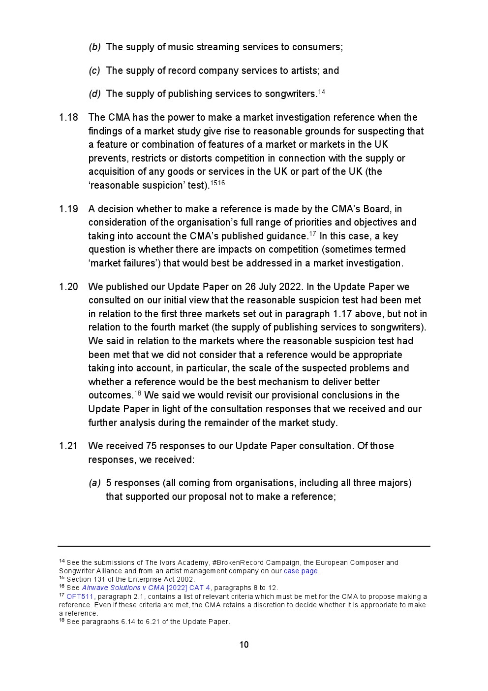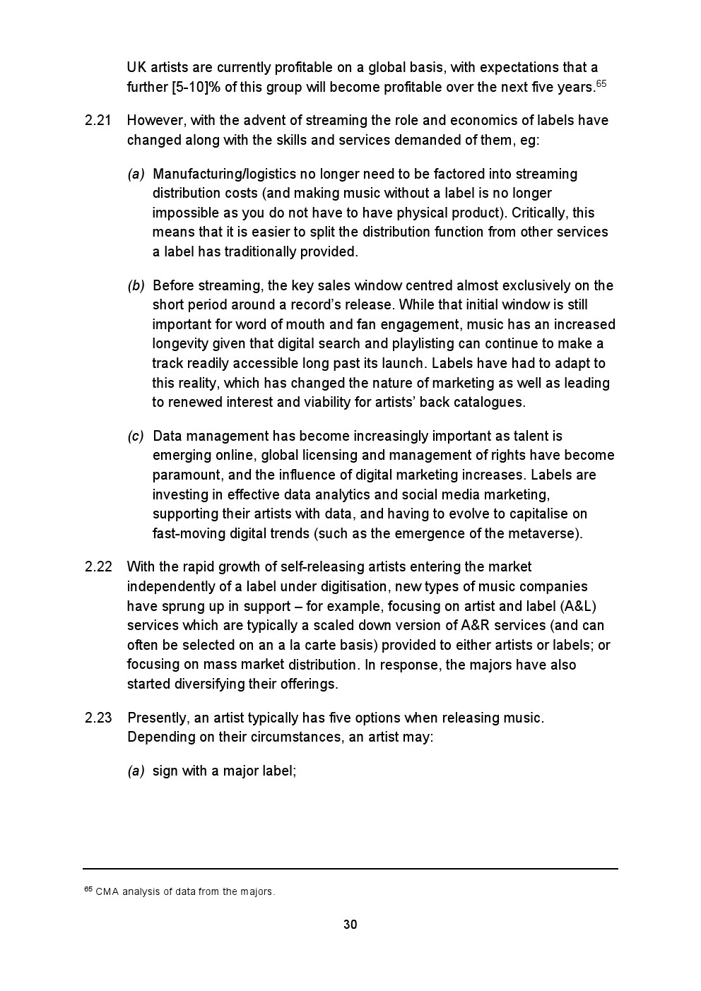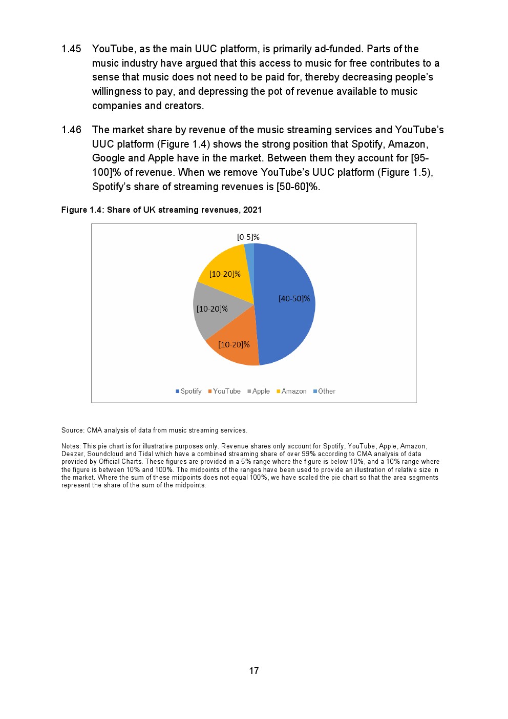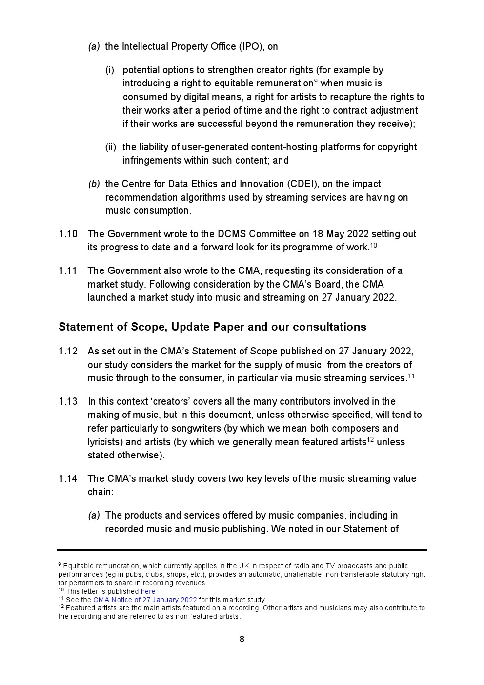 CMA发布了最新的“音乐和流媒体报告”。除了更广泛的文化和社会作用外,音乐还是英国经济的重要创意产业,2021 年为英国经济贡献 40 亿英镑,出口额为 25 亿英镑。