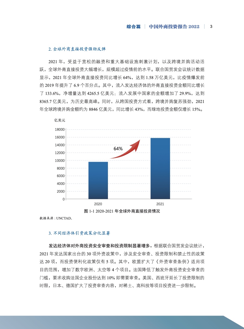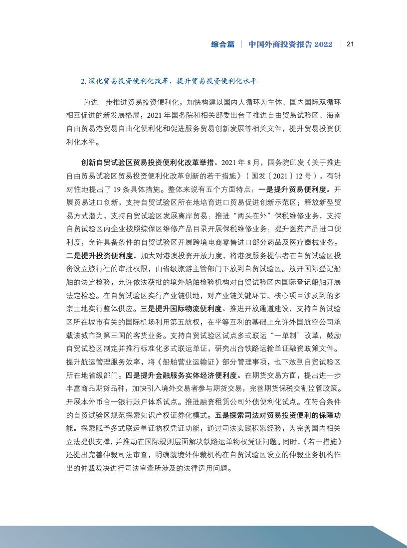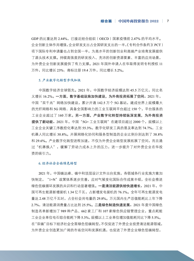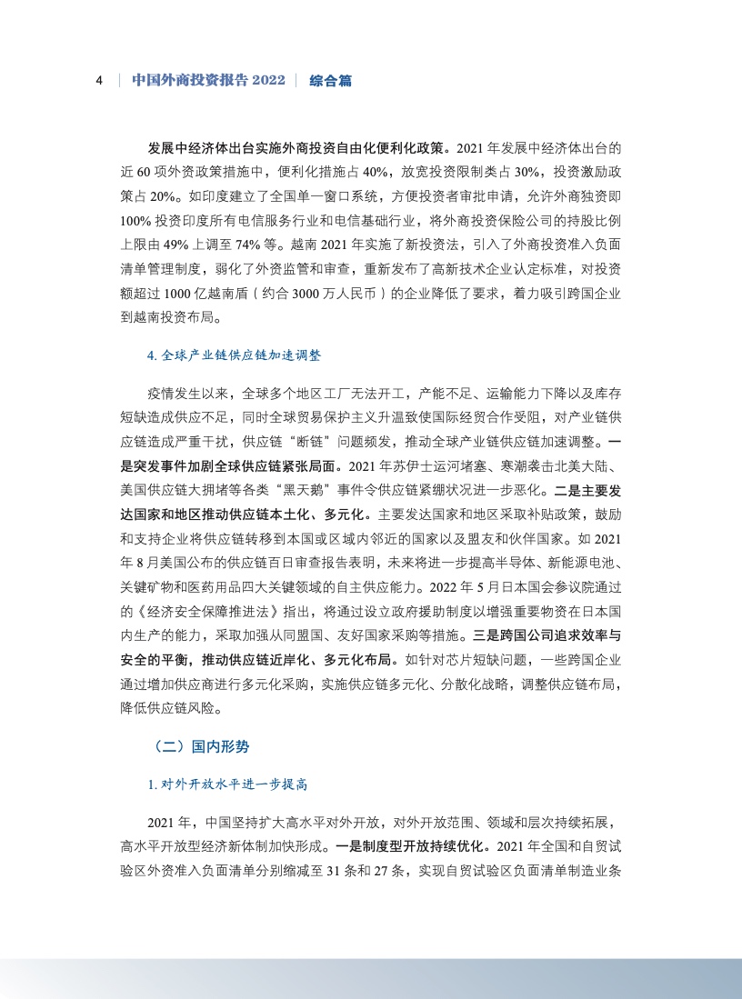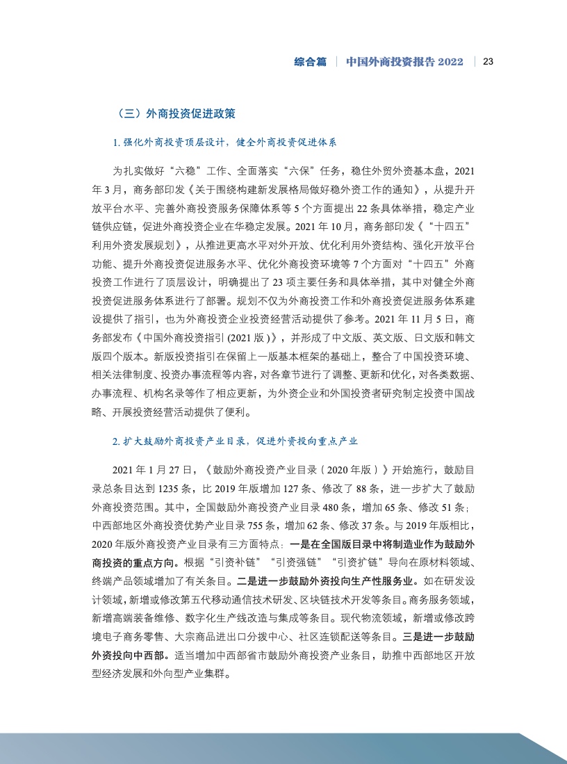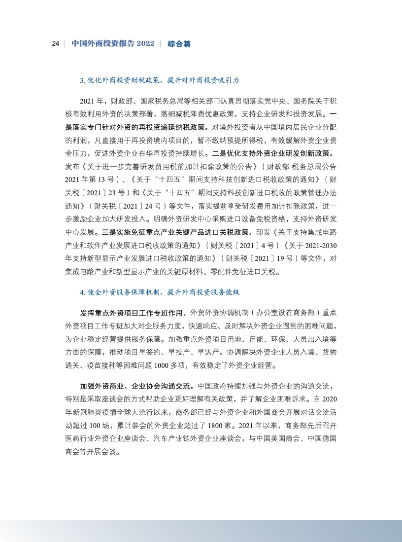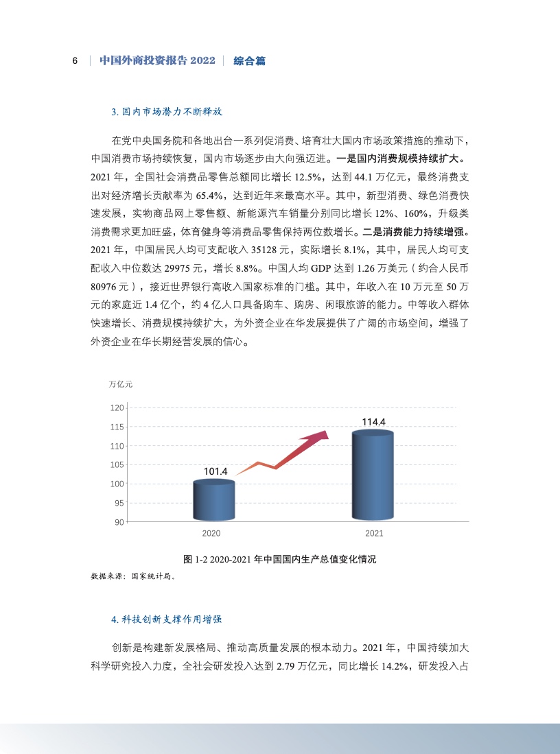 2021 年,在世界经济缓慢复苏、新冠疫情持续蔓延、全球产业链供应 链受阻等复杂多变的国际形势下,中国科学统筹疫情防控和经济社会发展,国民经济 持续稳定恢复,高质量发展取得新成效,对外商投资形成了强大吸引力,促进了外商 投资持续增长。